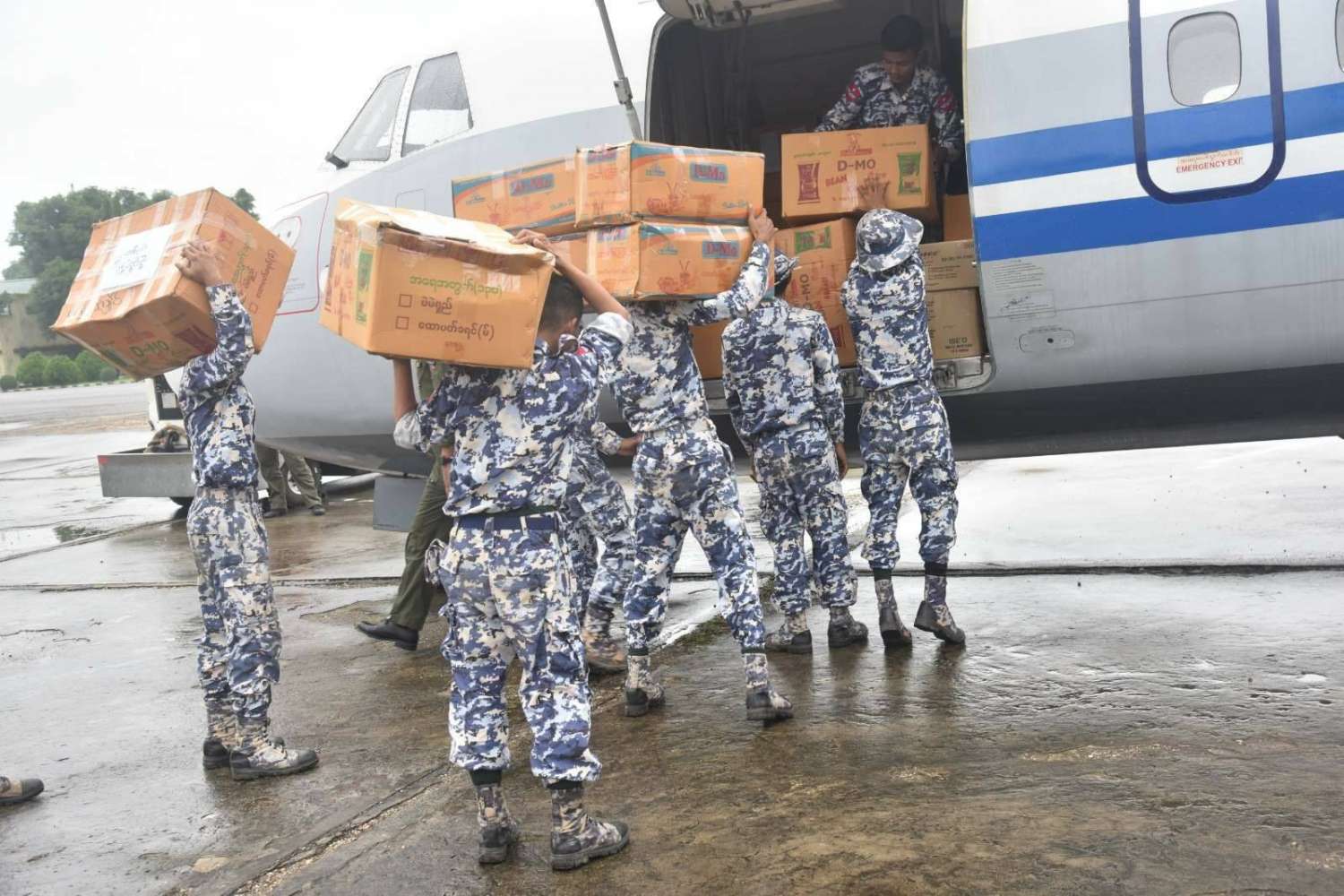 တပ်မတော်(လေ)အနေဖြင့် သဘာဝဘေးဒဏ်သင့်ဒေသများသို့ တပ်မတော်(ကြည်း၊ ရေ၊ လေ) မိသားစုများ၊ စေတနာရှင်အလှူရှင်များက လှူဒါန်းသည့် စားသောက်ဖွယ်ရာများ၊ ကူညီထောက်ပံ့ရေးပစ္စည်းများ၊ အမျိုးသားသဘာဝဘေးအန္တရာယ်ဆိုင်ရာ စီမံခန့်ခွဲမှုကော်မတီက ထောက်ပံ့ပေးအပ်သည့်ပစ္စည်းများကို တပ်မတော်လေယာဉ်၊ ရဟတ်ယာဉ်များဖြင့် ကူညီပို့ဆောင်ပေးလျက်ရှိသည်။