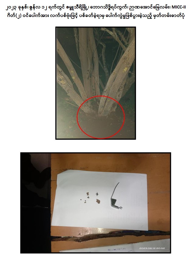 - အလားတူ ဇွန်လ ၁၂ ရက်တွင် မြင့်ကျော်နှင့် သက်နိုင်တို့ ၂ ဦးမှ ဇမ္ဗူသီရိမြို့နယ်၊ ဘောဂသိဒ္ဓိရပ်ကွက်၊ ဉာဏအောင်မြေလမ်း၊ MICC-II ဂိတ်(၂)ဝင်ပေါက်အား လက်ပစ်ဗုံးဖြင့် ပစ်ခတ်ဖောက်ခွဲခဲ့ရာတွင် ရဲနိုင်မှ အခြေအနေကြည့်ရှုပေးခဲ့ကြောင်း။