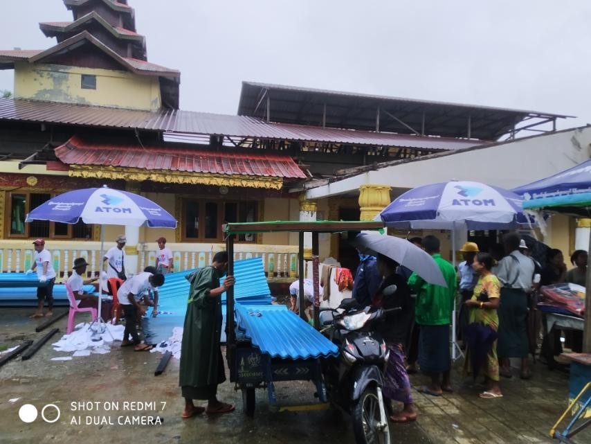 အလားတူ ရသေ့တောင်မြို့သို့ရောက်ရှိနေသော ဗိုလ်ချုပ်အောင်မျိုးထွန်းသည် ဌာနဆိုင်ရာ တာဝန်ရှိသူများနှင့်အတူ အောင်မြေဗောဓိသာသနာ့ရိပ်သာ အလိုတော်ပြည့်ကျောင်းတိုက်၌ ATOM တစ်နှစ်ပြည့် အထိမ်းအမှတ်အဖြစ် ဆိုင်ကလုန်းမိုန်တိုင်းတိုက်ခတ်ခဲ့သည့် မြို့ပေါ်ရပ်ကွက် ၂ ခုနှင့် ကျေးရွာ ၃ ရွာတို့မှ ဒေသခံ ပြည်သူများအတွက် ATOM နှင့် We Love Rakhine အဖွဲ့တို့မှ ဆန်၊ စားသောက်ဖွယ်ရာများနှင့် ဆောက်လုပ်ရေးပစ္စည်းများ ပေးအပ်လှူဒါန်းပွဲသို့ တက်ရောက်အားပေးသည်။