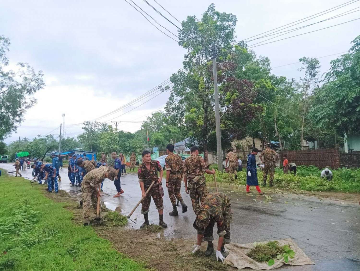 သဘာဝဘေးအန္တရာယ်ကျရောက်ခဲ့ရသည့်ဒေသများတွင် လိုအပ်သည့် ကူညီကယ်ဆယ်ရေးနှင့် ပြန်လည်ထူထောင်ရေးလုပ်ငန်းများ ကူညီဆောင်ရွက်ပေးနိုင်ရေးအတွက် တပ်မတော်မှ ကြိုတင်စုဖွဲ့စေလွှတ်ထားသည့် ကူညီကယ်ဆယ်ရေးအဖွဲ့များသည် နယ်မြေခံလုံခြုံရေးတပ်ဖွဲ့ဝင်များ၊ လူမှုကယ်ဆယ်ရေးအဖွဲ့များနှင့် ပူးပေါင်း၍ သက်ဆိုင်ရာဒေသများတွင် အင်တိုက်အားတိုက် ကူညီဆောင်ရွက်ပေးလျက်ရှိသည်။