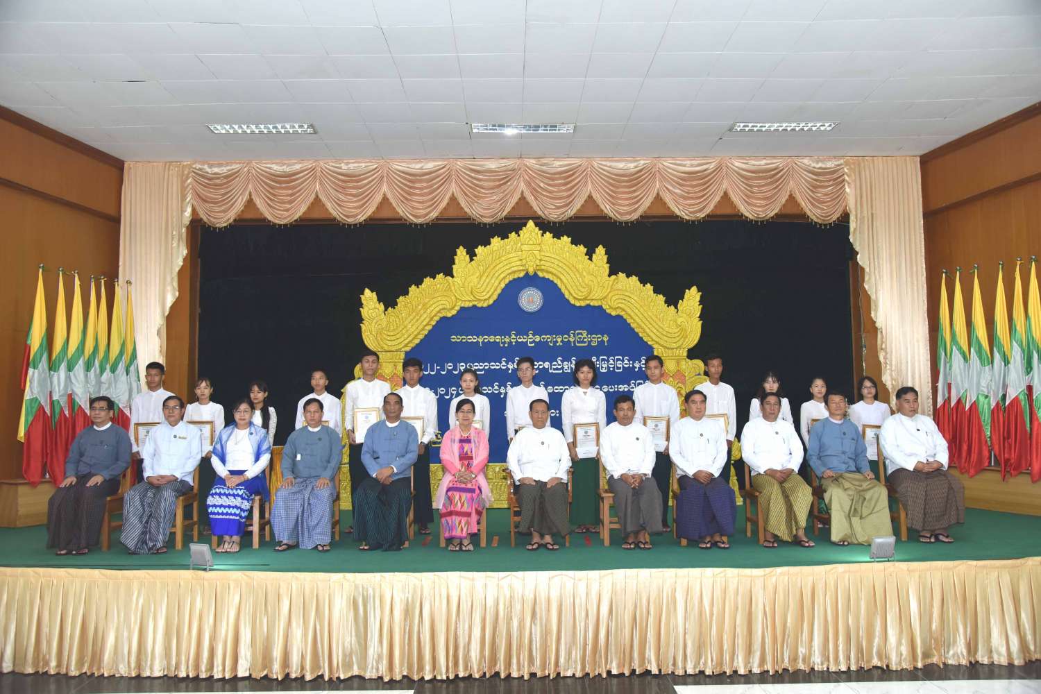 ယနေ့ကျင်းပသည့် အခမ်းအနားတွင် သာသနာရေးနှင့်ယဉ်ကျေးမှုဝန်ကြီးဌာနမှ ဝန်ထမ်းမိသားစုများ၏ ကျောင်းသား ကျောင်းသူ ၁၉၈၅ ဦးအတွက် ပညာသင်ထောက်ပံ့ကြေး ငွေကျပ် ၁၄,၂၈၁,၀၀၀ ကိုလည်းကောင်း၊ တက္ကသိုလ်ဝင်တန်း အောင်မြင်သူ ၄၄ ဦးအနက် ရိုးရိုးအောင်မြင်သူ ၃၀ အတွက် တစ်ဦးလျှင် ကျပ်ငါးသောင်း၊ ဂုဏ်ထူးတစ်ခုလျှင် တစ်ဘာသာ တစ်သိန်းနှုန်းဖြင့် ဂုဏ်ထူးရရှိသူ ၁၄ ဦးအတွက် ချီးမြှင့်ငွေကျပ် ၄,၇၀၀,၀၀၀ ကိုလည်းကောင်း ချီးမြှင့်ခဲ့ပြီး စုစုပေါင်းထောက်ပံ့ချီးမြှင့်ငွေကျပ် ၁၈,၉၈၁,၀၀၀ ဖြစ်ကြောင်း သိရသည်။