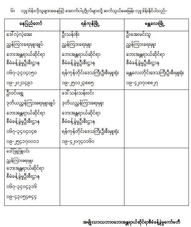 ၂။ ထိုသို့ကြေညာရာတွင် အခြားသော အီလက်ထရောနစ် ငွေပေးချေမှုစနစ်နှင့် မိုဘိုင်းငွေပေးချေမှု စနစ်များဖြင့် လှူဒါန်းနိုင်ရန် ဆက်လက်ဆောင်ရွက်လျက်ရှိပြီး ထပ်မံအသိပေး ကြေညာသွားမည်ဟု ပါရှိပါသည်။