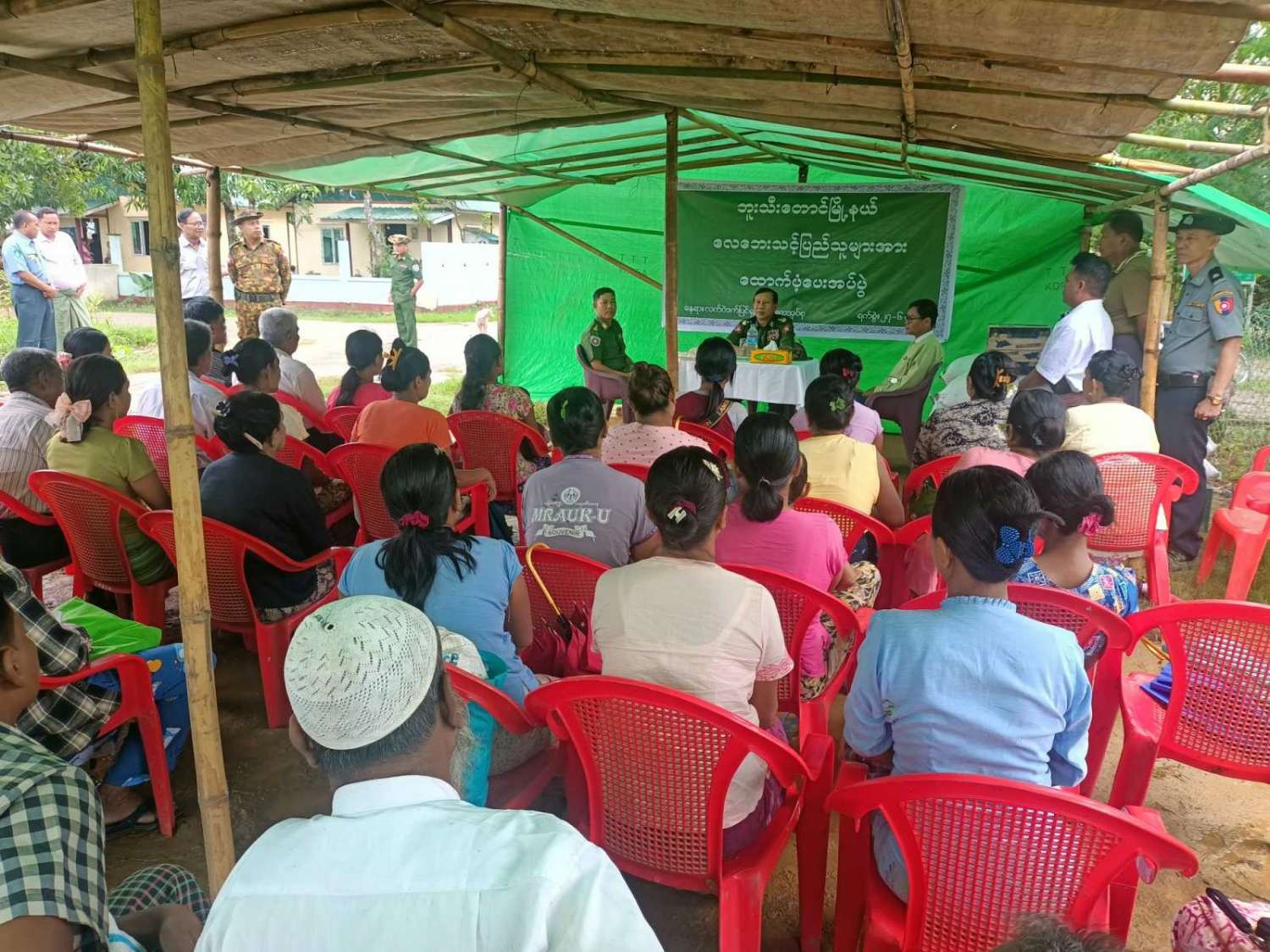 အလားတူ ရခိုင်ပြည်နယ်၊ ဘူးသီးတောင်မြို့နယ်သို့ ရောက်ရှိနေသော ကာကွယ်ရေးဦးစီးချုပ်ရုံး(ကြည်း)မှ ဒုတိယဗိုလ်ချုပ်ကြီး အေးဝင်းသည် ဌာနဆိုင်ရာတာဝန်ရှိသူများနှင့်အတူ လက်ဝဲဒက်ပြင်ရှည်ကျေးရွာအုပ်စု၊ ဂန္ဓမာကျေးရွာ၌ ကျေးရွာ ၄ ရွာမှ ဒေသခံပြည်သူများအား နယ်မြေခံဆေးကုသရေးအဖွဲ့များက လိုအပ်သည့်ကျန်းမာရေးစောင့်ရှောက်မှုလုပ်ငန်းများ ဆောင်ရွက်ပေးနေမှုများကို သွားရောက်ကြည့်ရှုအားပေးပြီး ကျေးရွာ ၈ ရွာမှ လေဘေးသင့်ပြည်သူများအား ဆန်နှင့်စားသောက်ဖွယ်ရာများ ထောက်ပံ့ပေးအပ်သည်။ ယင်းနောက် အမှတ်(၃)ရပ်ကွက်ရှိ မြို့လယ်ရေမြောင်းအား မြို့သန့်ရှင်းသာယာလှပစေရေး၊ မိုးရာသီကာလ ရေမြောင်းများ ရေပြည့်ရေလျှံမှုများ မဖြစ်စေရန်နှင့် ရေစီးရေလာ ကောင်းမွန်စေရေးအတွက် စက်ယန္တရားများဖြင့် ရေမြောင်းများ တူးဖော်ဆောင်ရွက်နေမှုအား သွားရောက်ကြည့်ရှုအားပေးပြီး လိုအပ်သည်များညှိနှိုင်း ဆောင်ရွက်ပေးသည်။