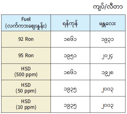 (၁) MOPS ဈေးနှုန်းပေါ်တွင် အခြေခံတွက်ချက်ထားခြင်း ဖြစ်ပါသည်။