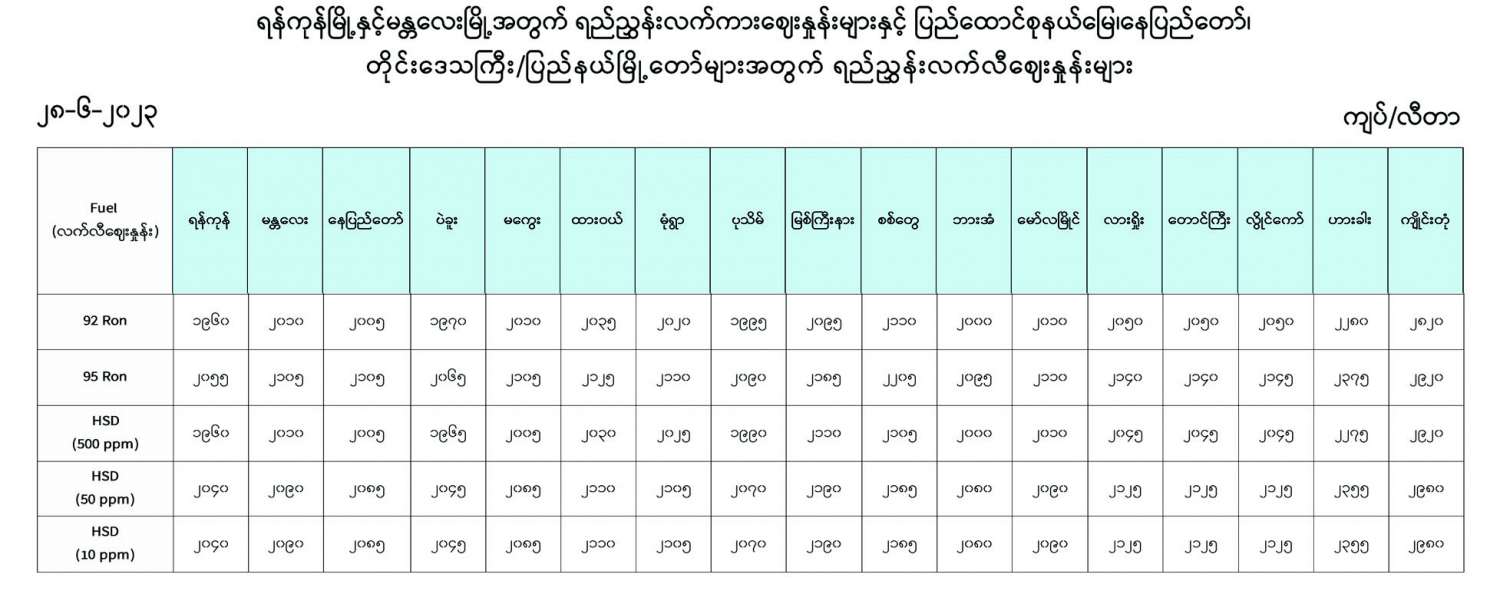 ရန်ကုန်မြို့နှင့် မန္တလေးမြို့အတွက် ရည်ညွှန်းလက်ကားဈေးနှုန်းများနှင့် ပြည်ထောင်စုနယ်မြေ နေပြည်တော်၊ တိုင်းဒေသကြီး/ ပြည်နယ် မြို့တော်များအတွက် ရည်ညွှန်းလက်လီဈေးနှုန်းများ