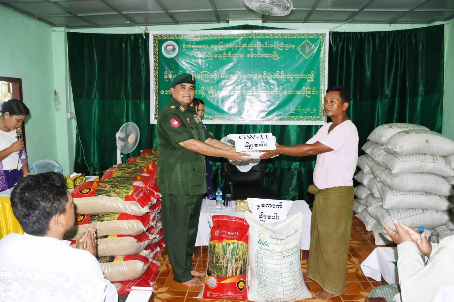 ထို့အတူ မောင်တောမြို့သို့ရောက်ရှိနေသော ဗိုလ်မှူးချုပ် တင်ဆွေသည် ဌာနဆိုင်ရာတာဝန်ရှိသူများနှင့်အတူ မောရဝတီကျေးရွာသို့ ရောက်ရှိလာသည့် မျိုးစပါးများအား ကြည့်ရှုစစ်ဆေးပြီး မုန်တိုင်းဒဏ်ကြောင့် မျိုးစပါးများ ပျက်စီးခဲ့သည့် ကိုင်းကြီးကျေးရွာ၊ မောရဝတီကျေးရွာနှင့် ဥဒေါင်းကျေးရွာတို့မှ တောင်သူ ၃၅ ဦးတို့ကို GW- 11 မျိုးစပါးနှင့် နှံကောက်မျိုးစပါး စုစုပေါင်းတင်း ၁၀၀ ကို ထောက်ပံ့ပေးအပ်ခဲ့ကြောင်း သတင်းရရှိသည်။