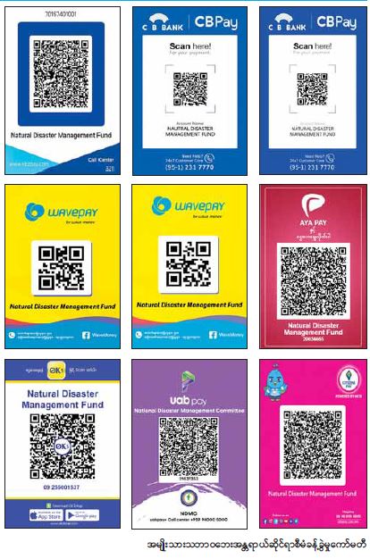 ၅။ ယခုအခါ ပြည်သူများလှူဒါန်းမှုပြုလုပ်ရာတွင် ပိုမိုအဆင်ပြေစေရေး ပြည်သူများအသုံးပြုမှု များပြားသည့် CB Pay ၊ AYA Pay၊ OK $ ၊ UAB pay နှင့် Citizens Pay တို့ဖြင့်လည်း လှူဒါန်းနိုင်ရေး ဆောင်ရွက်ထားပြီးဖြစ်သဖြင့် QR အား Scan ဖတ်ခြင်း၊ QR တွင်ပါဝင်သော ကုတ်နံပါတ်အား ရိုက်ထည့်၍ လှူဒါန်းခြင်းများ ဆောင်ရွက်နိုင်ပါသည်။