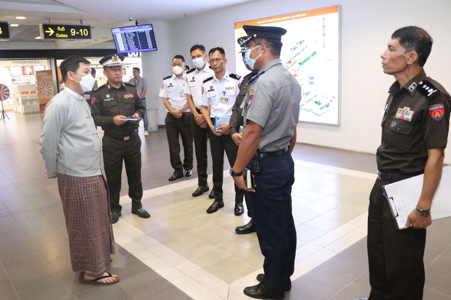 လူဝင်မှုကြီးကြပ်ရေးနှင့်ပြည်သူ့အင်အားဝန်ကြီးဌာန ပြည်ထောင်စုဝန်ကြီး ဦးမြင့်ကြိုင်သည် အီလက်ထရောနစ်မှတ်ပုံတင်စနစ်ဦးစီးဌာန ညွှန်ကြားရေးမှူးချုပ် ဦးမင်းဟိန်း၊ တာဝန်ရှိသူများနှင့် အတူ ယနေ့နံနက် ၈ နာရီတွင် မန္တလေးတိုင်းဒေသကြီး တံတားဦးမြို့နယ်ရှိ မန္တလေးအပြည်ပြည် ဆိုင်ရာလေဆိပ်သို့ရောက်ရှိပြီး လေဆိပ်ရှိ ပြည်ပထွက်ခွာကောင်တာ၌ လူဝင်မှုကြီးကြပ်ရေးဆိုင်ရာ ဝန်ထမ်းများက ခရီးသည်များအား လူဝင်မှုစစ်ဆေးရေးလုပ်ငန်းများ ဆောင်ရွက်နေမှုနှင့် လူဝင်မှုစစ်ဆေးရေးကောင်တာများ၌ စက်များတပ်ဆင်ထားရှိမှု အခြေအနေများကို လှည့်လည်ကြည့်ရှုစစ်ဆေးရာ လေဆိပ်တာဝန်ခံ ဦးခင်မောင်ကြည်က လူဝင်မှုကြီးကြပ်ရေးဆိုင်ရာလုပ်ငန်းများ ဆောင်ရွက်နေမှုအခြေအနေကို လိုက်လံရှင်းလင်း ပြသသည်။