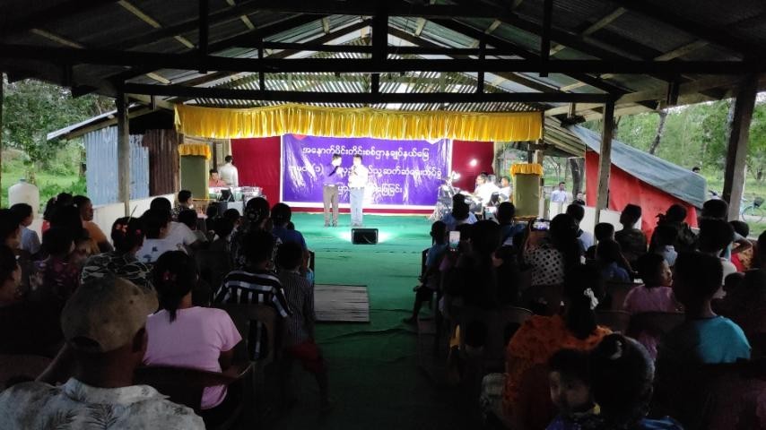 ရခိုင်ပြည်နယ်အတွင်းရှိ မိုခါမုန်တိုင်းဒဏ်သင့်ဒေသများတွင် ပြန်လည်ထူထောင်ရေးလုပ်ငန်းများ ဆောင်ရွက်လျက်ရှိသည့် နယ်မြေခံတပ်မတော်သားများ၊ မြန်မာနိုင်ငံရဲတပ်ဖွဲ့ဝင်များ၊ မီးသတ်တပ်ဖွဲ့ဝင်များနှင့် မိသားစုဝင်များအား စိတ်ရွှင်လန်းချမ်းမြေ့စေရန်နှင့် ပင်ပန်းနွမ်းနယ်မှုများ ပြေပျောက်စေရန်အတွက် ယနေ့ညနေပိုင်းတွင် ဝါခုတ်ချောင်းတပ်နယ်ရှိ၊ နယ်မြေခံတပ်ရင်းခန်းမ၌ ကာကွယ်ရေးဦးစီးချုပ်ရုံး (ကြည်း) ပြည်သူ့ဆက်ဆံရေးနှင့် စိတ်ဓါတ်စစ်ဆင်ရေးညွှန်ကြားရေးမှူးရုံး ကွပ်ကဲမှုအောက်ရှိ နယ်လှည့်ပြည်သူ့ဆက်ဆံရေး တပ်ခွဲမှ စစ်သည်/ စစ်သမီးများက အဆို/ အကများဖြင့် ဖျော်ဖြေတင်ဆက်ကြသည်။