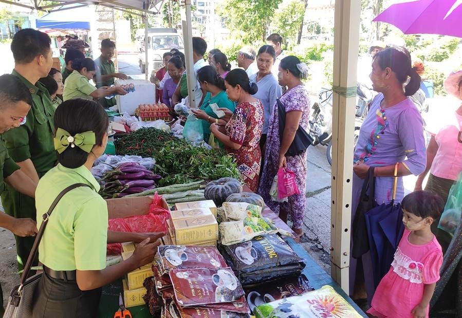 ယနေ့တွင်လည်း စစ်တွေမြို့၊ ဦးဥတ္တမပန်းခြံ၌ ဆန်၊ ဆီ၊ ဆား၊ အသား/ ငါး ကြက်ဥ၊ ဘဲဥ၊ နို့ထွက်ပစ္စည်းများ၊ ဟင်းသီးဟင်းရွက်များ၊ ကြက်သွန်နီ၊ ကြက်သွန်ဖြူနှင့် တပ်မတော်စက်ရုံများနှင့် မြန်မာစီးပွားရေးကော်ပိုရေးရှင်းတို့မှ ထုတ်လုပ်သည့် ခေါက်ဆွဲခြောက်၊ ဘီစကွတ်နှင့် စည်သွပ်ဘူးများဖြစ်သည့် အမဲသားဘူး၊ မျှစ်စားတော်ပဲဘူး၊ ကြက်သားအာလူးဘူး၊ ငါးတန်အချိုပေါင်းဘူး၊ ငါးသလောက်ဘူး၊ ငပိကြော်ဘူး၊ ပဲထောပတ်ဘူး၊ ပဲခရမ်းဘူး၊ သရက်သီးသနပ်ဘူး စသည့်စားသောက်ကုန်များ၊ မြန်မာ့စီးပွားရေးဦးပိုင်အများနှင့် သက်ဆိုင်သောကုမ္ပဏီလီမိတက် အရောင်းဆိုင်များ၏ စားကုန်ပစ္စည်းများ၊ လျှပ်စစ်ပစ္စည်းများနှင့် အိမ်ဆောက်ပစ္စည်းများကို ပြင်ပပေါက်ဈေးထက် သက်သာသော ဈေးနှုန်းများဖြင့် ဆက်လက်ရောင်းချပေးလျက်ရှိသည်။