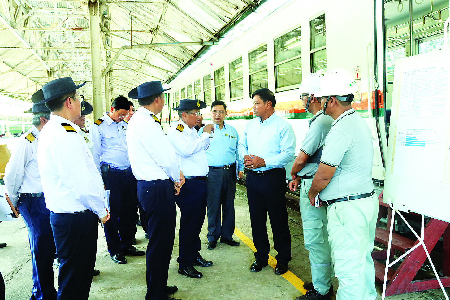 ထို့နောက် ပြည်ထောင်စုဝန်ကြီးနှင့်အဖွဲ့သည် ရန်ကုန်ဘူတာကြီးဝင်းအတွင်းရှိ Rail Bus Engine-RBE စက်ခေါင်းရုံသို့ရောက်ရှိပြီး စက်ခေါင်းရုံအတွင်း၌ West Corporation ထံမှ လက်ခံရရှိသည့် RBE တွဲများ ပြုပြင်ဆောင်ရွက်နေမှုနှင့် ပြုပြင်ပြီးစီးမှုအခြေအနေများကို ကြည့်ရှုစစ်ဆေးရာ မြန်မာ့မီးရထားအထွေထွေမန်နေဂျာ(စက်မှု/လျှပ်စစ်)နှင့် RBE စက်ရုံ၊ စက်ရုံမှူးတို့က ရှင်းလင်းတင်ပြမှုအပေါ် ပြည်ထောင်စုဝန်ကြီးက လိုအပ်သည်များ မှာကြားခဲ့ကြောင်း သိရသည်။
