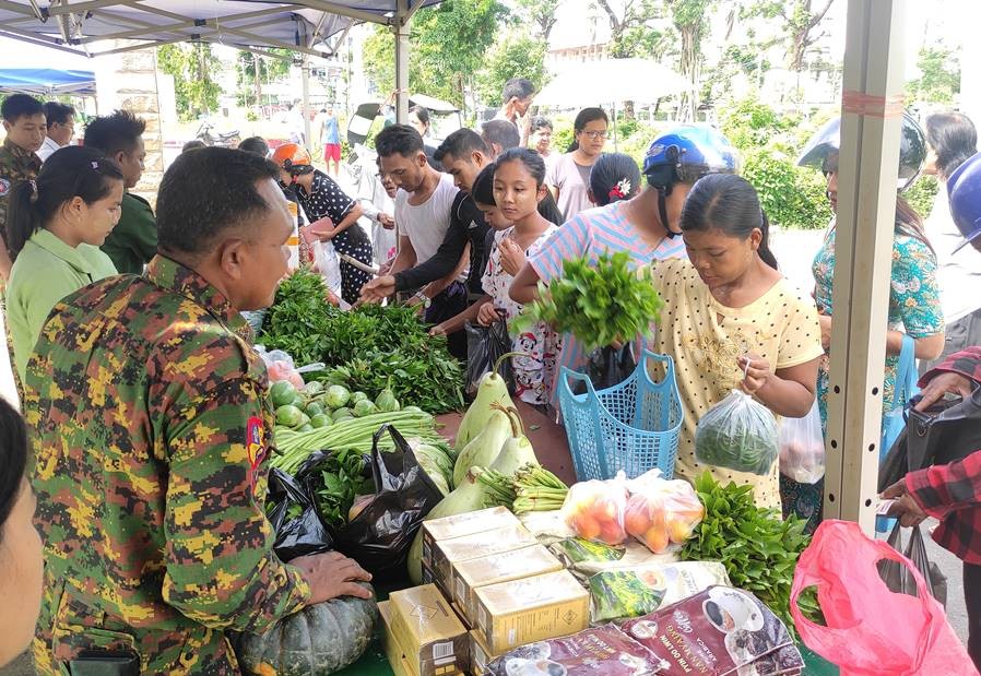 ယနေ့တွင်လည်း စစ်တွေမြို့၊ ဦးဥတ္တမပန်းခြံ၌ ဆန်၊ ဆီ၊ ဆား၊ အသား/ ငါးကြက်ဥ၊ ဘဲဥ၊ နို့ထွက်ပစ္စည်းများ၊ ဟင်းသီးဟင်းရွက်များ၊ ကြက်သွန်နီ၊ ကြက်သွန်ဖြူနှင့် တပ်မတော်စက်ရုံများနှင့် မြန်မာစီးပွားရေးကော်ပိုရေးရှင်းတို့မှထုတ်လုပ်သည့် ခေါက်ဆွဲခြောက်၊ ဘီစကွတ်နှင့် စည်သွပ်ဘူးများဖြစ်သည့် အမဲသားဘူး၊ မျှစ်စားတော်ပဲဘူး၊ ကြက်သား အာလူးဘူး၊ ငါးတန်အချိုပေါင်းဘူး၊ ငါးသလောက်ဘူး၊ ငပိကြော်ဘူး၊ ပဲထော ပတ်ဘူး၊ ပဲခရမ်းဘူး၊ သရက်သီးသနပ်ဘူး စသည့် စားသောက်ကုန်များ၊ မြန်မာ့စီးပွားရေးဦးပိုင်အများနှင့် သက်ဆိုင်သော ကုမ္ပဏီလီမိတက် အရောင်းဆိုင်များ၏ စားကုန်ပစ္စည်းများ၊ လျှပ်စစ်ပစ္စည်းများနှင့် အိမ်ဆောက်ပစ္စည်းများကို ပြင်ပပေါက်ဈေးထက် သက်သာသောဈေးနှုန်းများဖြင့် ဆက်လက်ရောင်းချပေးလျက်ရှိသည်။