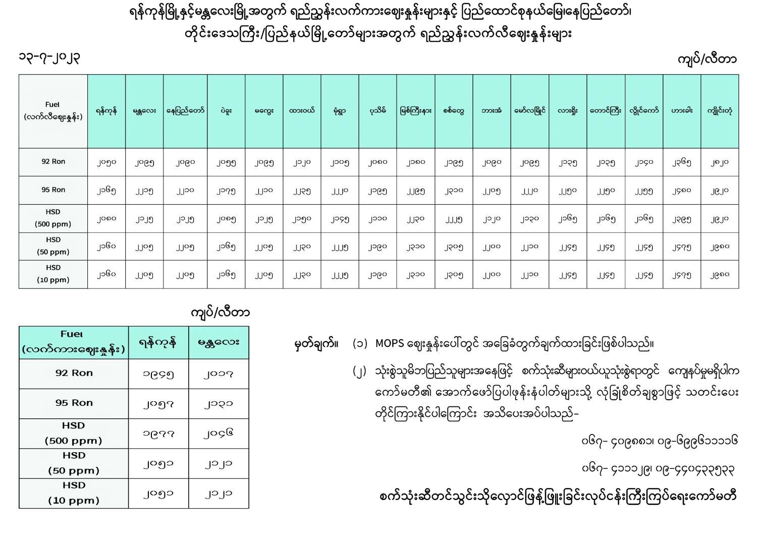 ရန်ကုန်မြို့နှင့် မန္တလေးမြို့အတွက် ရည်ညွှန်းလက်ကားဈေးနှုန်းများနှင့် ပြည်ထောင်စုနယ်မြေ နေပြည်တော်၊ တိုင်းဒေသကြီး/ပြည်နယ် မြို့တော်များအတွက် ရည်ညွှန်းလက်လီဈေးနှုန်းများ 07/13/2023