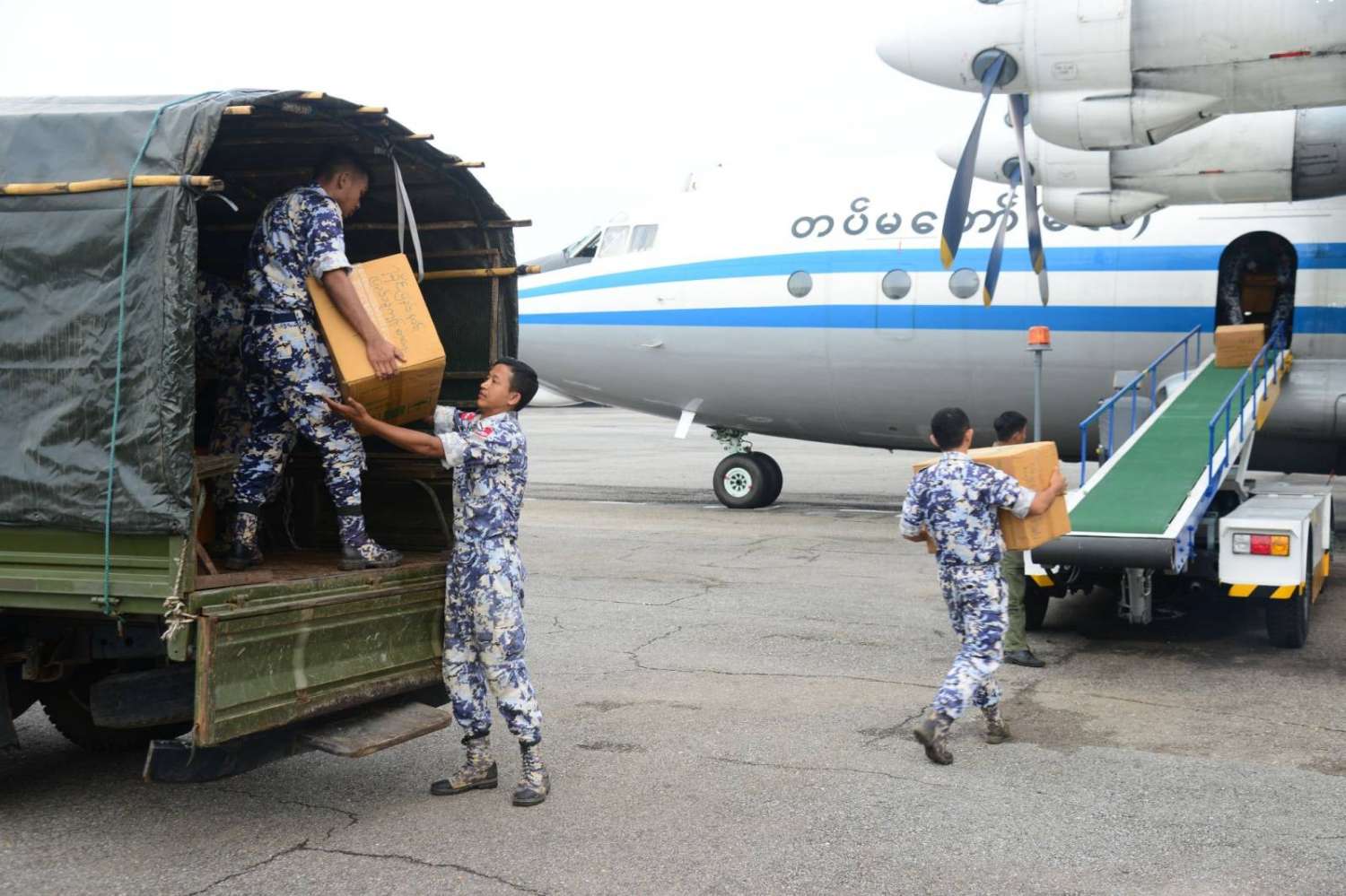 ထိုသို့ပို့ဆောင်ပေးလျက်ရှိရာ ယနေ့တွင် ကျန်းမာရေးဝန်ကြီးဌာနကပေးပို့သည့် ခွန်အားဖြည့် ဓာတ်ဆားနှင့် ရေသန့်ကတ် ၅.၅ တန်အား ရန်ကုန်အပြည်ပြည်ဆိုင်ရာ လေဆိပ်မှ စစ်တွေလေဆိပ်သို့ တပ်မတော်(လေ)မှ လေယာဉ်ဖြင့် ပို့ဆောင်ပေးခဲ့ပါသည်။