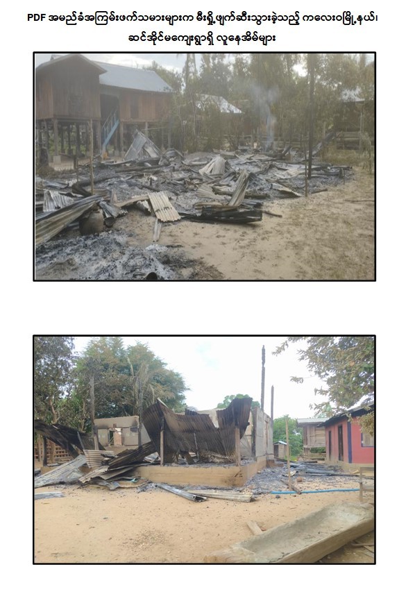အဆိုပါအကြမ်းဖက်သမားများ ဆုတ်ခွာထွက်ပြေးစဉ် ကျေးရွာရှိ နေအိမ်များအား မီးရှို့ဖျက်ဆီး ခဲ့မှုကြောင့် လူနေအိမ် ၆၅ လုံးနှင့် အခြေခံပညာအလယ်တန်း ကျောင်း(ခွဲ) ၁ ကျောင်းတို့ မီးလောင်ပျက်စီးသွားခဲ့ပြီး လက်နက်ငယ်များဖြင့် ပစ်ခတ်တိုက်ခိုက်မှုကြောင့် ကျေးရွာနေ အရပ်သားပြည်သူ ၁ ဦး သေဆုံးကာ ၁ ဦး ဒဏ်ရာရရှိခဲ့ကြောင်းနှင့် လုံခြုံရေးတပ်ဖွဲ့ဝင်တစ်ချို့ ထိခိုက်ဒဏ်ရာရရှိခဲ့ကြောင်း သိရှိရ သည်။