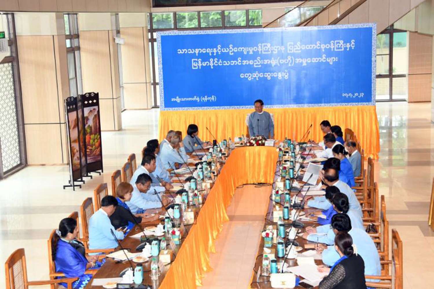 မွန်းလွဲပိုင်းတွင် ပြည်ထောင်စုဝန်ကြီးသည် ရန်ကုန်မြို့အမျိုးသားဇာတ်ရုံ၌ မြန်မာနိုင်ငံသဘင် အစည်းအရုံး (ဗဟို) ဥက္ကဋ္ဌ ဦးဖိုးချစ်၊ အမှုဆောင်အဖွဲ့ဝင်များနှင့် တွေ့ဆုံဆွေးနွေးသည်။
