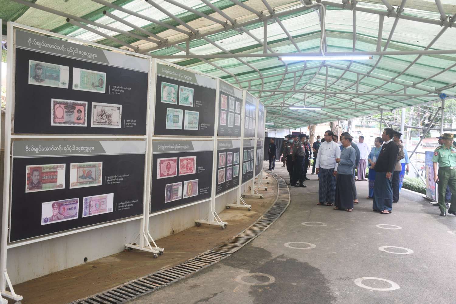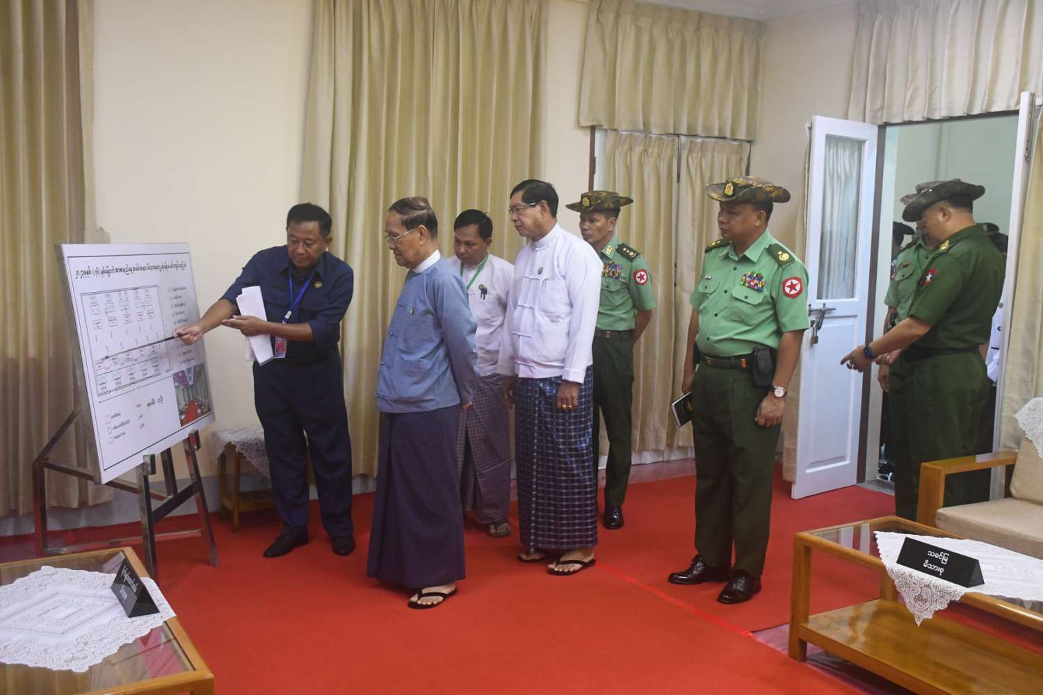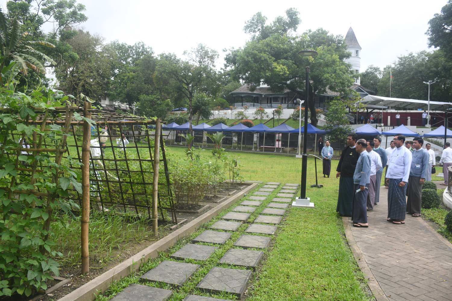 ဆက်လက်၍ ပြည်ထောင်စုဝန်ကြီးနှင့်အဖွဲ့သည် ဗိုလ်တထောင်မြို့နယ်၊ အတွင်းဝန်ရုံး (ယခင်ဝန်ကြီးများရုံး) ၏ ပြတိုက်အတွင်း လှည့်လည်ကြည့်ရှု စစ်ဆေးသည်။