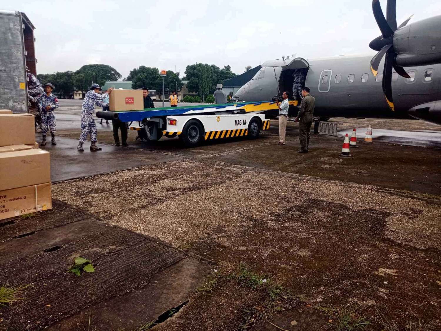 တပ်မတော် (လေ) အနေဖြင့် သဘာဝဘေးဒဏ်သင့်ဒေသများသို့ တပ်မတော် (ကြည်း၊ ရေ၊ လေ) မိသားစုများ၊ စေတနာရှင်အလှူရှင်များကလှူဒါန်းသည့် စားသောက်ဖွယ်ရာများ၊ ကူညီထောက်ပံ့ရေးပစ္စည်းများ၊ အမျိုးသားသဘာဝဘေးအန္တရာယ်ဆိုင်ရာ စီမံခန့်ခွဲမှုကော်မတီက ထောက်ပံ့ပေးအပ်သည့်ပစ္စည်းများကို တပ်မတော်လေယာဉ်၊ ရဟတ်ယာဉ်များဖြင့် ကူညီပို့ဆောင်ပေးလျက်ရှိသည်။