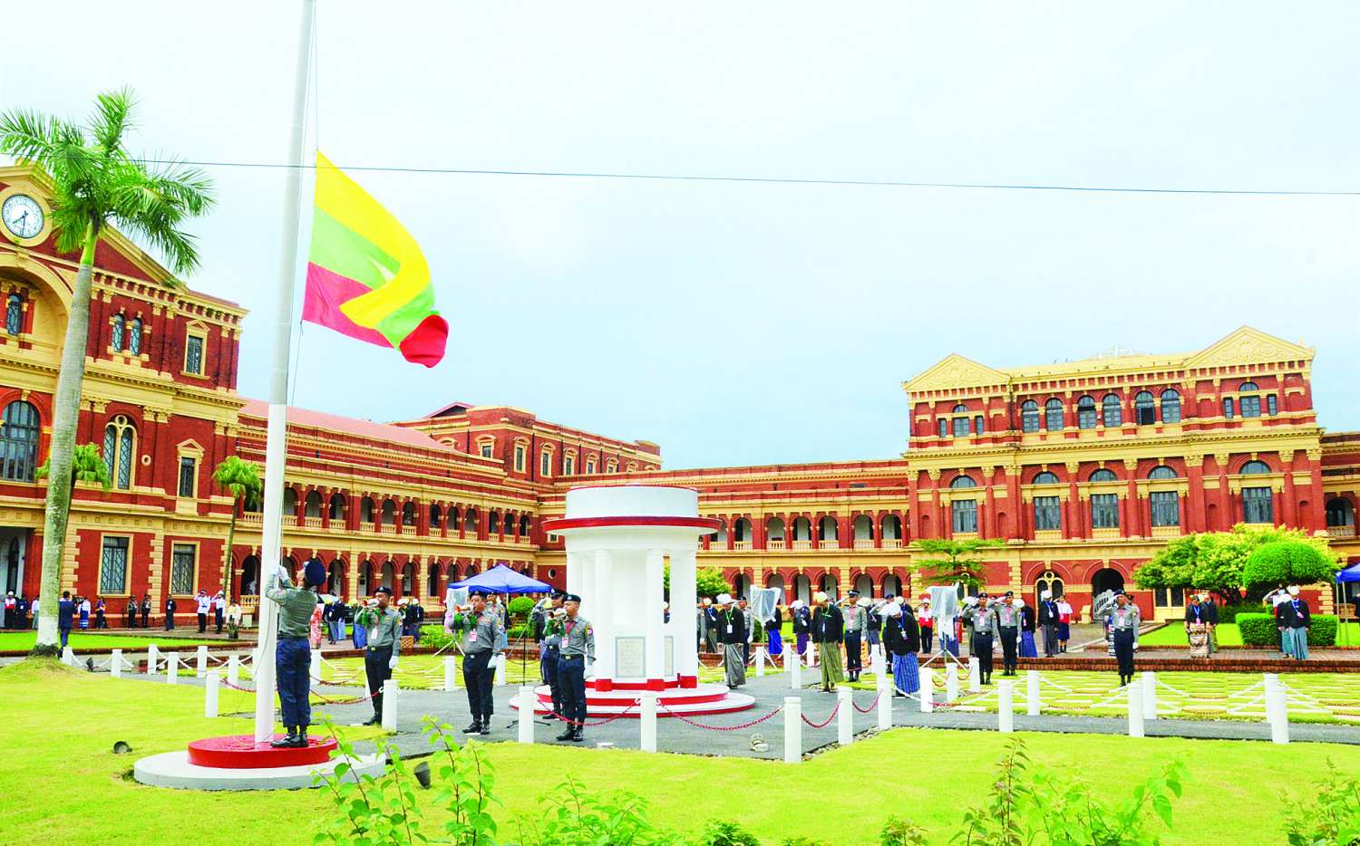 ရန်ကုန်မြို့ အတွင်းဝန်ရုံး (ယခင် ဝန်ကြီးများရုံး) ၌ (၇၆)နှစ်မြောက် အာဇာနည်နေ့ဝမ်းနည်းခြင်းအထိမ်းအမှတ် နိုင်ငံတော်အလံအားတိုင်ဝက်သို့ လျှော့ချလွှင့်ထူ၍ အလေးပြုခြင်းအခမ်းအနားကို ယနေ့နံနက် ၇ နာရီခွဲက ဗိုလ်ချုပ်အောင်ဆန်းနှင့်တကွ အာဇာနည်ခေါင်းဆောင်ကြီးများကျဆုံးခဲ့ရာ ရန်ကုန်မြို့ဗိုလ်တထောင်မြို့နယ် ရှိ အတွင်းဝန်ရုံး (ယခင်ဝန်ကြီး များရုံး)၌ ကျင်းပသည်။