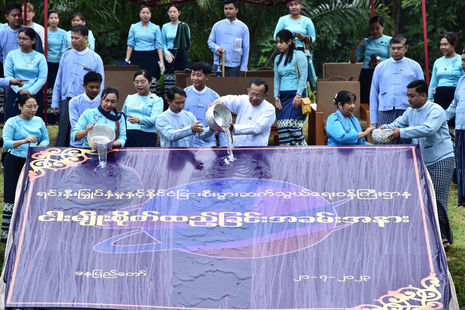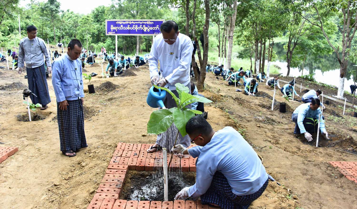 ထို့နောက် ဌာနဆိုင်ရာတာဝန်ရှိသူများက သတ်မှတ်နေရာများတွင် စုပေါင်းသစ်ပင် စိုက်ပျိုးကြရာ ပြည်ထောင်စုဝန်ကြီးနှင့် တာဝန်ရှိသူများက လှည့်လည်ကြည့်ရှု အားပေးကြသည်။