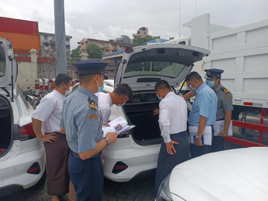 အမျိုးသားအဆင့် လျှပ်စစ်သုံးယာဉ်နှင့် ဆက်စပ်လုပ်ငန်းများ ဖွံ့ဖြိုးတိုးတက်ရေးဦးဆောင် ကော်မတီ၏ ခွင့်ပြုချက်ဖြင့် N.P.K Motors Co.,Ltd. မှ တင်သွင်းလာသော MG, MG5 အမျိုးအစား လျှပ်စစ်သုံးမော်တော်ယာဉ် (၅) စီးသည် ရန်ကုန်ဆိပ်ကမ်းသို့ ရောက်ရှိလာသဖြင့် ယနေ့တွင် လုပ်ထုံးလုပ်နည်းနှင့်အညီ ထုတ်ယူခွင့်ပြုခဲ့ကြောင်းနှင့် အဆိုပါ လျှပ်စစ်သုံးမော်တော်ယာဉ်များ တင်သွင်းမှုအတွက် အကောက်ခွန်ကင်းလွတ်ခွင့်ပြုထားကြောင်း သိရသည်။