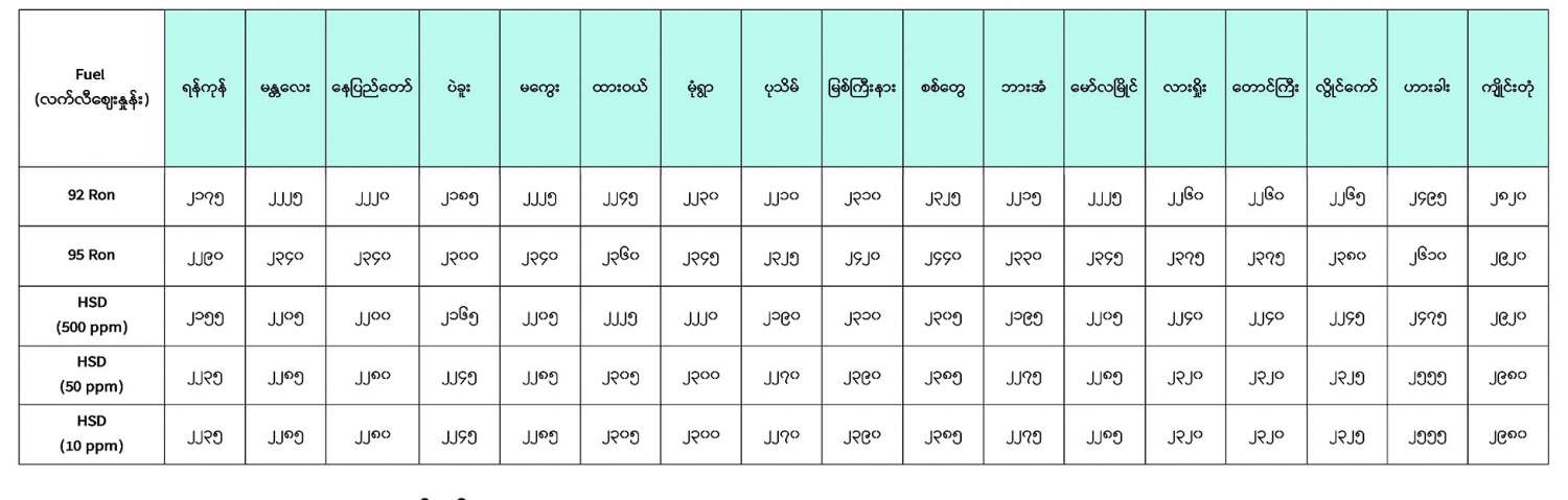 ရန်ကုန်မြို့နှင့် မန္တလေးမြို့အတွက် ရည်ညွှန်းလက်ကားဈေးနှုန်းများနှင့် ပြည်ထောင်စုနယ်မြေ နေပြည်တော်၊ တိုင်းဒေသကြီး/ ပြည်နယ် မြို့တော်များအတွက် ရည်ညွှန်းလက်လီဈေးနှုန်းများ