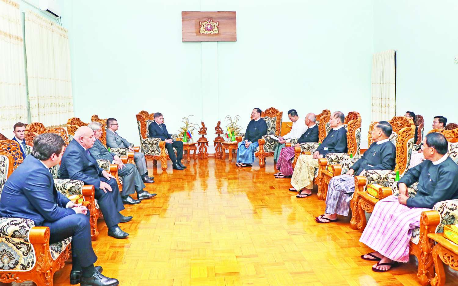 ပြည်ထောင်စုတရားသူကြီးချုပ် ဦးထွန်းထွန်းဦးသည် မြန်မာနိုင်ငံ၌ တရားဝင်ချစ်ကြည်ရေး ခရီးစဉ် ရောက်ရှိနေသော ရုရှားဖက်ဒရေးရှင်းနိုင်ငံ တရား ရုံးချုပ် တရားသူကြီးချုပ် H.E. Mr. Vyacheslav Lebedev ဦးဆောင်သော ကိုယ်စားလှယ်အဖွဲ့ကို ယမန်နေ့ နံနက်ပိုင်းက နေပြည်တော်ရှိ ပြည်ထောင်စု တရား လွှတ်တော်ချုပ် အစည်းအဝေးခန်းမ၌ လက်ခံ တွေ့ဆုံသည်။