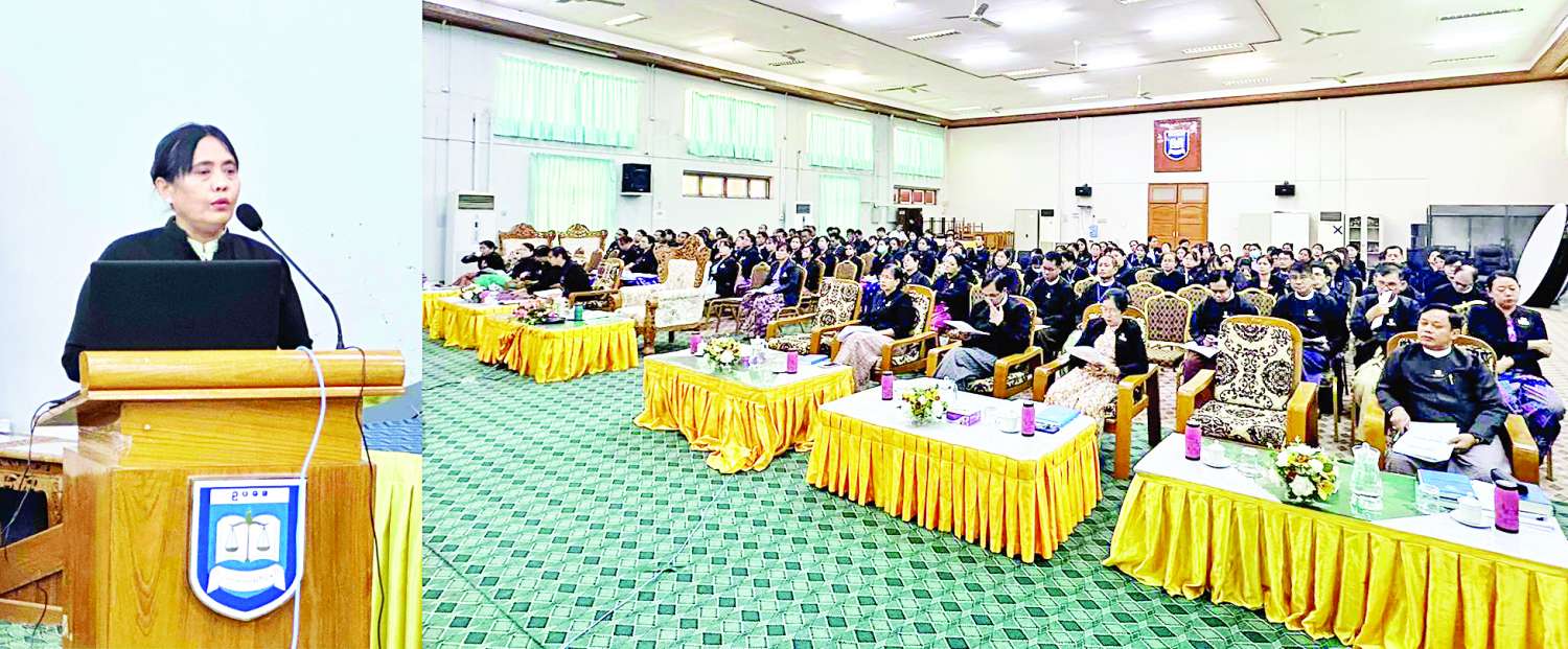 စာတမ်းဖတ်ပွဲတွင် ဥပဒေရေးရာဝန်ကြီးဌာန ပြည်ထောင်စုဝန်ကြီးနှင့် ပြည်ထောင်စုရှေ့နေချုပ်ဒေါက်တာသီတာဦးက ဥပဒေရေးရာဝန်ကြီးဌာနရှိ ဥပဒေသုတေသနအဖွဲ့များသည် ၂၀၂၂ ခုနှစ်အတွင်းစာတမ်း ၁၂ စောင်ကို ရေးသားပြုစုနိုင်ခဲ့ကြောင်း၊ ၎င်းတို့ရေးသားပြုစုခဲ့သည့်စာတမ်းများကို လုပ်ငန်းအဖွဲ့ခြောက်ဖွဲ့က လစဉ်အလှည့်ကျဖတ်ကြားလာခဲ့ရာ ယခုစာတမ်းဖတ်ပွဲမှာ တတိယအကြိမ်မြောက်ဖြစ်ကြောင်း၊ ယခုကဲ့သို့ စာတမ်းဖတ်ပွဲများ ကျင်းပရခြင်း၏ရည်ရွယ်ချက်မှာ ဥပဒေရေးရာဝန်ကြီးဌာန တိုင်းဒေသကြီး/ပြည်နယ် ဥပဒေချုပ်ရုံးများနှင့် ဥပဒေရုံးအဆင့်ဆင့်၌ တာဝန်ထမ်းဆောင်နေကြသော အရာထမ်းများကိုဥပဒေအသိပညာများ တိုးတက်စေရန်၊ လုပ်ငန်းစွမ်းဆောင်ရည် အရည်အသွေး မြင့်မားစေရန်၊ စာတမ်းဖတ်ပွဲအတွေ့အကြုံများရရှိစေရန်နှင့် ဥပဒေဗဟုသုတများကို အပြန်အလှန်ဆွေးနွေးဖလှယ်နိုင်စေရန်ဖြစ်ကြောင်း ပြောကြားသည်။