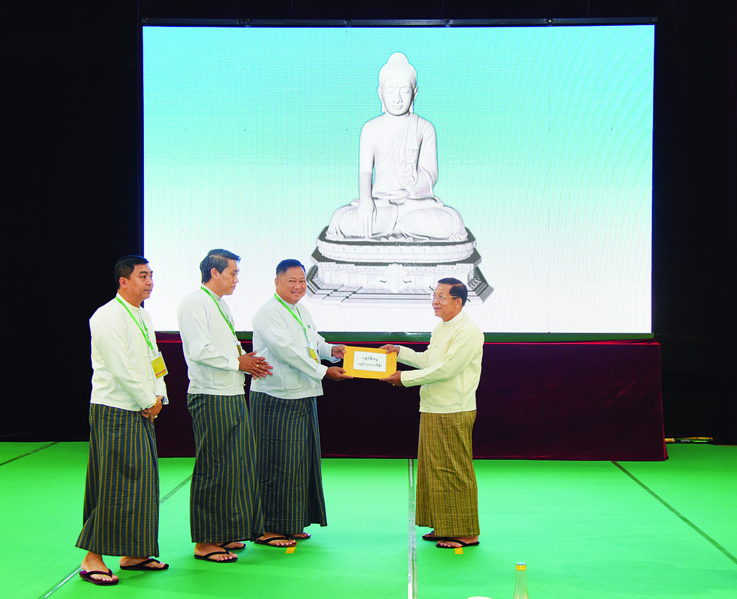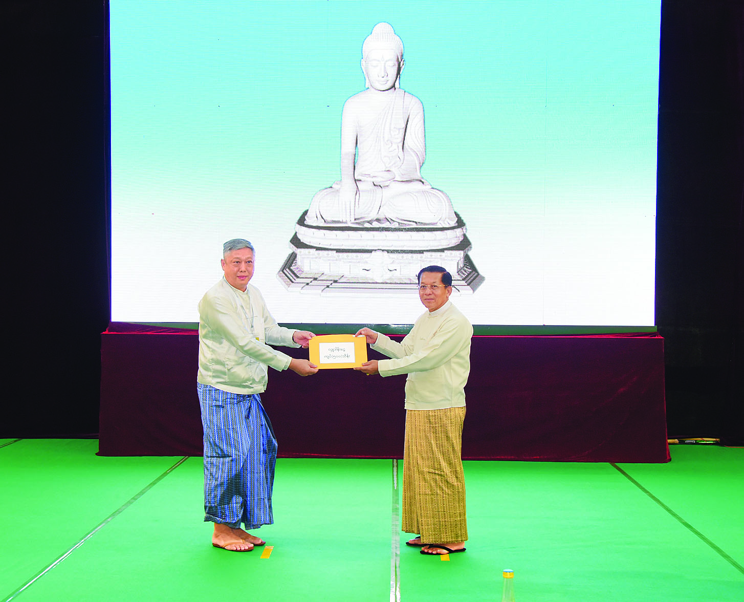 ထို့နောက် အခမ်းအနား တက်ရောက်လာကြသူများက မာရဝိဇယ ဗုဒ္ဓရုပ်ပွားတော်မြတ်ကြီးနှင့် မာရဝိဇယဗုဒ္ဓဥယျာဉ် တည်ဆောက်ခြင်းအတွက် ကြည်ညိုသဒ္ဓါပွားများလျက် အလှူငွေများကို ပေးအပ်လှူဒါန်းလာသဖြင့် ဦးဆောင်ဘုရား ဒါယကာ နိုင်ငံတော်စီမံအုပ်ချုပ်ရေးကောင်စီ ဥက္ကဋ္ဌ နိုင်ငံတော်ဝန်ကြီးချုပ်က လက်ခံရယူသည်။ မာရဝိဇယ ဗုဒ္ဓရုပ်ပွားတော်မြတ်ကြီးနှင့် မာရဝိဇယ ဗုဒ္ဓဥယျာဉ် တည်ဆောက်ခြင်းအတွက် ယနေ့ တက်ရောက်လာကြသူများ၏ လှူဒါန်းမှုအနေ ဖြင့် ပြည်တွင်း၊ ပြည်ပအလှူရှင် ၂၇၄ ဦးမှ လှူဒါန်းငွေ ၅ ဒသမ ၀၄ ဘီလီယံ (ငွေကျပ် သန်း ၅၀၀၀ ကျော်)၊ အမေရိကန် ဒေါ်လာ ၂၃၀၀၀ နှင့် ထိုင်းဘတ်ငွေတစ်သိန်း တို့ဖြစ်ကြောင်း သိရှိရသည်။