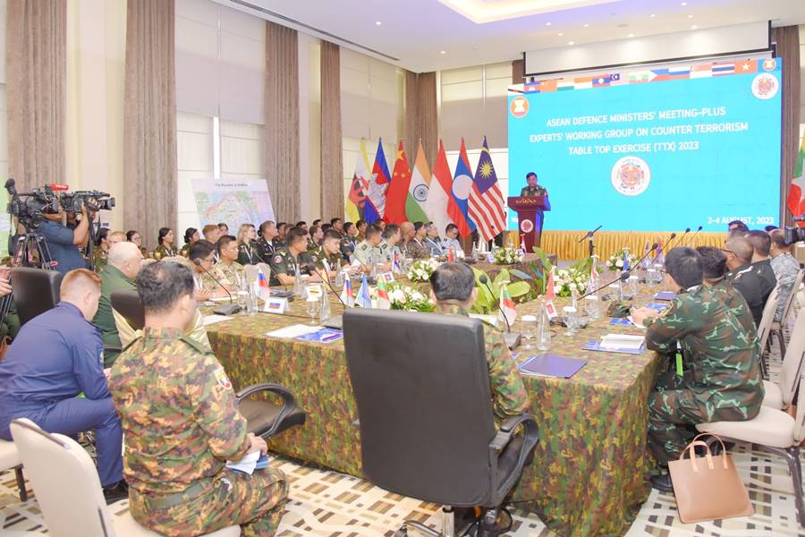 အာဆီယံအပေါင်း အကြမ်းဖက်မှုတန်ပြန်တိုက်ဖျက်ရေးဆိုင်ရာ စားပွဲတင် လေ့ကျင့်ခန်း (Table Top Exercises)သို့ အာဆီယံအပေါင်းနိုင်ငံ ၁၂ နိုင်ငံမှ တပ်မတော်အရာရှိကြီးများ ပါဝင်တက်ရောက်လျက်ရှိသည်။