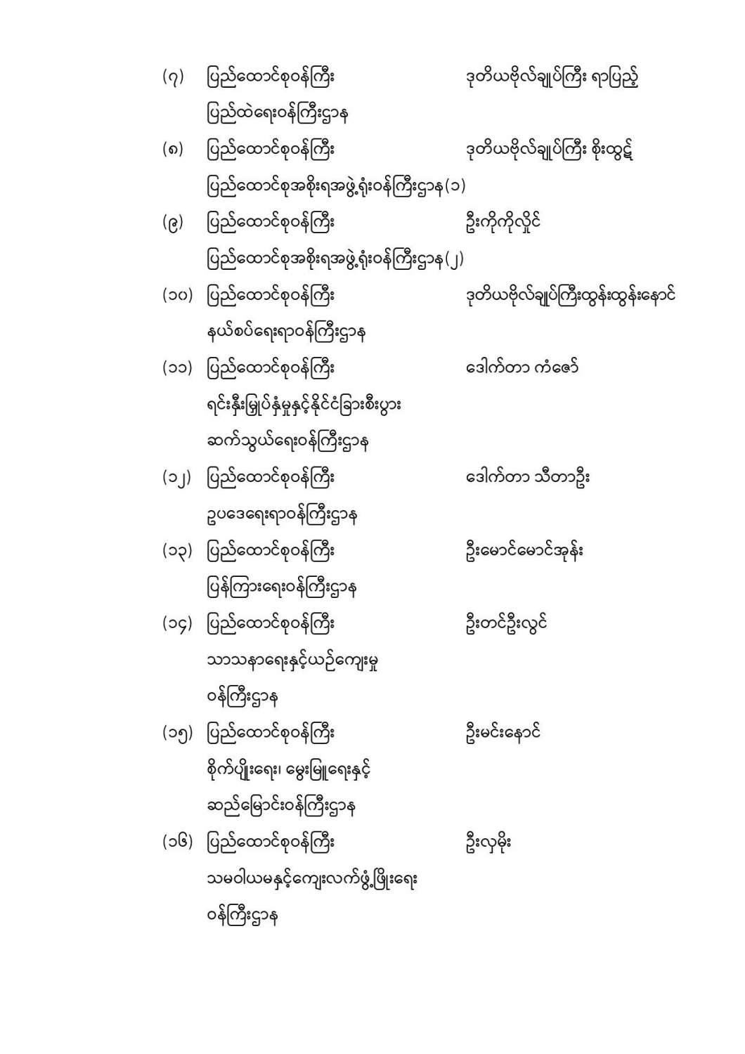 ပြည်ထောင်စုအစိုးရအဖွဲ့ ပြင်ဆင်ဖွဲ့စည်းခြင်း 08/04/2023 ပြည်ထောင်စုသမ္မတမြန်မာနိုင်ငံတော် နိုင်ငံတော်စီမံအုပ်ချုပ်ရေးကောင်စီ အမိန့်အမှတ်၊ ၆၁ / ၂၀၂၃ ၁၃၈၅ ခုနှစ်၊ ဒုတိယဝါဆိုလပြည့်ကျော် ၂ ရက် (၂၀၂၃ ခုနှစ်၊ ဩဂုတ်လ ၃ ရက်) ပြည်ထောင်စုအစိုးရအဖွဲ့ ပြင်ဆင်ဖွဲ့စည်းခြင်း