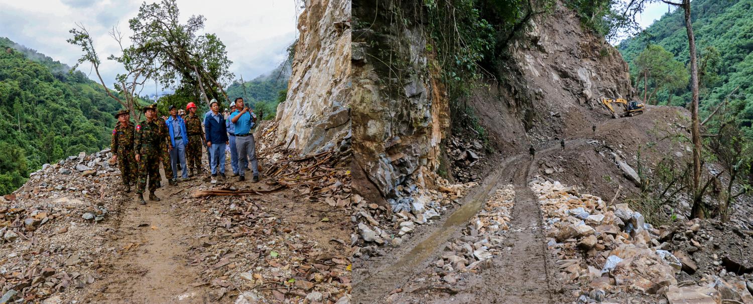 ဆက်လက်၍ ဒုတိယဝန်ကြီးနှင့်အဖွဲ့သည် ဩဂုတ် ၁၅ ရက်တွင် မဂွေဇ-ခေါင်လန်ဖူးကားလမ်း (၆၅/၄)မိုင်အနက် ဖောက်လုပ်ပြီးစီးခဲ့သည့် မေခမြစ်(ရီဒမ်း) အရှေ့ဖက်ခြမ်း မိုင်တိုင်(၄၇/၇)မိုင် လုပ်ငန်းခွင်သို့ရောက်ရှိခဲ့ပြီး ကျောက်တောင်များ မိုင်းခွဲရန် ပြင်ဆင်နေမှု၊ ယန္တရားများဖြင့် လမ်းဆက်လက်ဖောက်လုပ်နေမှုကို ခြေလျင်ခရီးဖြင့် သွားရောက်ကြည့်ရှုစစ်ဆေးခဲ့ပြီး လမ်းလုပ်ငန်းဆောင်ရွက်နေကြသည့် ဝန်ကြီးဌာနမှ ဝန်ထမ်းများ၊ စစ် မြေပြင်အင်ဂျင်နီယာတပ်ရင်းမှ စစ်သည်များ၊ ဒေသခံဌာနေလုပ်သားများအား လမ်းဖောက်လုပ်ခြင်းလုပ်ငန်းနှင့် စပ်လျဉ်း၍ သတ်မှတ်ကာလအတွင်း လုပ်ငန်းများအချိန်မီပြီးစီးရေးအတွက် ဝီရိယစိုက်ထုတ် ကြိုးပမ်းဆောင် ရွက်သွားကြရန်၊ ယခုလိုကြမ်းတမ်းသည့် မိုးရာသီကာလ၌ ခက်ခဲသည့်မြေပြင်အနေအထားတွင် လုပ်ငန်းဆောင်ရွက်နေကြသူများကို ဂုဏ်ပြုမှတ်တမ်းတင်ပါကြောင်းမှာကြားခဲ့ပြီး လိုအပ်သည်များ ဖြည့်ဆည်းဆောင် ရွက်ပေးသည်။