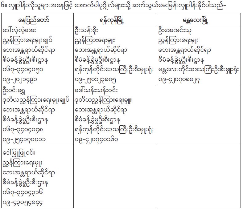 ၅။ ယခုအခါ ပြည်သူများလှူဒါန်းမှုပြုလုပ်ရာတွင် ပိုမိုအဆင်ပြေစေရေး ပြည်သူများ အသုံးပြုမှုများပြားသည့် CB Pay ၊ AYA Pay၊ OK $ ၊ UAB pay နှင့် Citizens Pay တို့ဖြင့်လည်း လှူဒါန်းနိုင်ရေး ဆောင်ရွက်ထားပြီးဖြစ်သဖြင့် QR အား Scan ဖတ်ခြင်း၊ QR တွင်ပါဝင်သော ကုတ်နံပါတ်အားရိုက်ထည့်၍ လှူဒါန်းခြင်းများ ဆောင်ရွက်နိုင်ပါသည်။