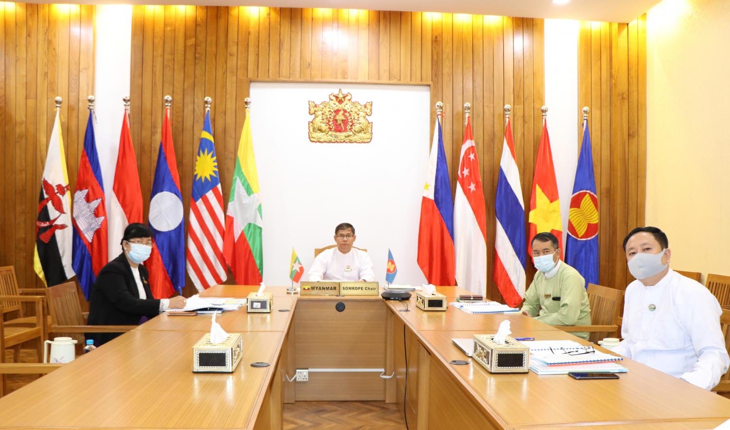 ရှေးဦးစွာ အာဆီယံကျေးလက်ဒေသ ဖွံ့ဖြိုးရေးနှင့် ဆင်းရဲမှုပပျောက်ရေးဆိုင်ရာ (SOMRDPE) အလှည့်ကျဥက္ကဋ္ဌ ကျေးလက်ဒေသဖွံ့ဖြိုးတိုးတက်ရေးဦးစီးဌာန ညွှန်ကြားရေးမှူးချုပ် ဦးခန့်ဇော်က ယနေ့ကမ္ဘာတစ်ဝှမ်းလုံးတွင် ဖြစ်ပွားနေသည့် ကိုဗစ်-၁၉ ကူးစက်ရောဂါအကျိုးဆက်ကြောင့် မိမိတို့ SOMRDPE မှ ဆောင်ရွက်နေသည့် ကျေးလက်ဒေသဖွံ့ဖြိုးရေးနှင့် ဆင်းရဲနွမ်းပါမှုပပျောက်ရေးလုပ်ငန်းများတွင် ထိခိုက်မှုများဖြစ်ပေါ်လျက်ရှိကြောင်း၊ မိမိတို့ SOMRDPE Focal Point များအားလုံးအနေဖြင့်လည်း ကမ္ဘာလုံးဆိုင်ရာကပ်ရောဂါအား တိုက်ဖျက်နိုင်ရေး၊ ဆင်းရဲနွမ်းပါးမှုလျော့ချနိုင်ရေးနှင့် ပြည်သူလူထု၏ တုံ့ပြန်နိုင်စွမ်းအားမြှင့်တင်နိုင်ရေးတို့အတွက် အချိန်နှင့်တပြေးညီ ထိရောက်စွာ အားလုံးဝိုင်းဝန်းပူးပေါင်းဆောင်ရွက်ရန်လိုအပ်ပါကြောင်း၊ မိမိတို့ မြန်မာနိုင်ငံ အနေဖြင့်လည်း အာဆီယံအဖွဲ့ဝင်နိုင်ငံများနှင့် ဆက်လက်ပူးပေါင်းဆောင်ရွက်သွားမည်ဖြစ်ပါကြောင်း ဆွေးနွေး ပြောကြားသည်။