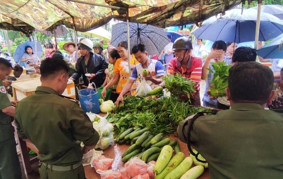 ဆိုင်ကလုန်းမုန်တိုင်း(မိုခါ)တိုက်ခတ်မှုကြောင့် မုန်တိုင်းဒဏ်သင့်ဒေသခံပြည်သူများနှင့် ဌာနဆိုင်ရာဝန်ထမ်းများ၏ စားသောက်ရေးအဆင်ပြေစေရန်နှင့် မိမိတို့အလိုရှိရာ စားသောက်ကုန်ပစ္စည်းများကို ဈေးနှုန်းသက်သာစွာဖြင့် ဝယ်ယူစားသောက်နိုင်ရေးအတွက် အနောက်ပိုင်းတိုင်းစစ်ဌာနချုပ်၊ နယ်မြေခံတပ်မတော်သားများနှင့် တာဝန်ရှိသူများက နေ့စဉ်ရောင်းချပေးလျက်ရှိသည်။
