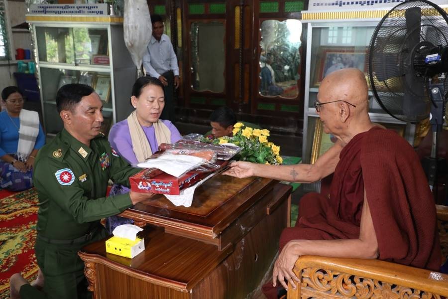 ရခိုင်ပြည်နယ်၊ စစ်တွေမြို့ရှိ မိုခါမုန်တိုင်းဒဏ်ကြောင့် ပျက်စီးမှုများဖြစ်ပေါ်ခဲ့ရသည့် ဘုန်းတော်ကြီးကျောင်းများရှိ သာသနိကအဆောက်အဦများအား ပြန်လည်ပြင်ဆင်ဆောင်ရွက်ထားရှိမှုနှင့် ဆက်လက်ပြင်ဆင်ဆောင်ရွက်လျက်ရှိသည့် အခြေအနေများအား ယနေ့နံနက်ပိုင်းတွင် အနောက်ပိုင်းတိုင်းစစ်ဌာနချုပ် တိုင်းမှူးဗိုလ်ချုပ်ထင်လတ်ဦးနှင့်အဖွဲ့ဝင်များက လိုက်လံကြည့်ရှုစစ်ဆေးကြပြီး နန္ဒာရာမပရိယတ္တိစာသင်တိုက်၊ ရွှေစေတီဘုန်းတော်ကြီးကျောင်းတိုက်၊ မဟာဇေယျသိဒ္ဒိအဓိဋ္ဌာန်ကျောင်းတိုက်၊ ခေမာမဏ္ဍိုင်ကျောင်းတိုက်၊ အမ္ဗာရာမကျောင်းတိုက်နှင့် ကျားရုပ်ဘုန်းတော်ကြီးကျောင်းတို့ရှိ သံဃာတော်များနှင့် သာသနာနွယ်ဝင်သီလရှင်များအား ဝါဆိုသင်္ကန်း၊ ဆွမ်းဆန်တော်၊ လှူဖွယ်ပစ္စည်းများနှင့် နဝကမ္မအလှူငွေများအား ကျောင်းတိုက်အသီးသီးသို့ သွားရောက်ဆက်ကပ်လှူဒါန်းကြသည်။