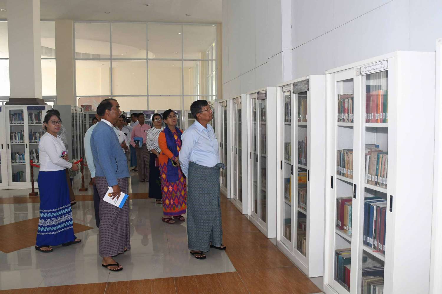 ထို့နောက် ပြည်ထောင်စုဝန်ကြီးသည် အမျိုးသားစာကြည့်တိုက် (နေပြည်တော်)ရှိ အလင်္ကာကျော်စွာ စည်သူတက္ကသိုလ်မြတ်သူစာစုခန်း၊ ကလေးစာဖတ်ခန်း၊ အီလက်ထရွန်နစ်စာဖတ်ခန်း၊ Bibliographic Services ဌာနစိတ်၊ ပေ၊ ပုရပိုက်ဌာနစိတ်၊ Data Center တည်ဆောက်ထားမှု နှင့် e-Library စနစ်ဆောင်ရွက်ထားရှိမှုတို့ကို လှည့်လည်ကြည့်ရှုစစ်ဆေးပြီး လိုအပ်သည်များ မှာကြားသည်။