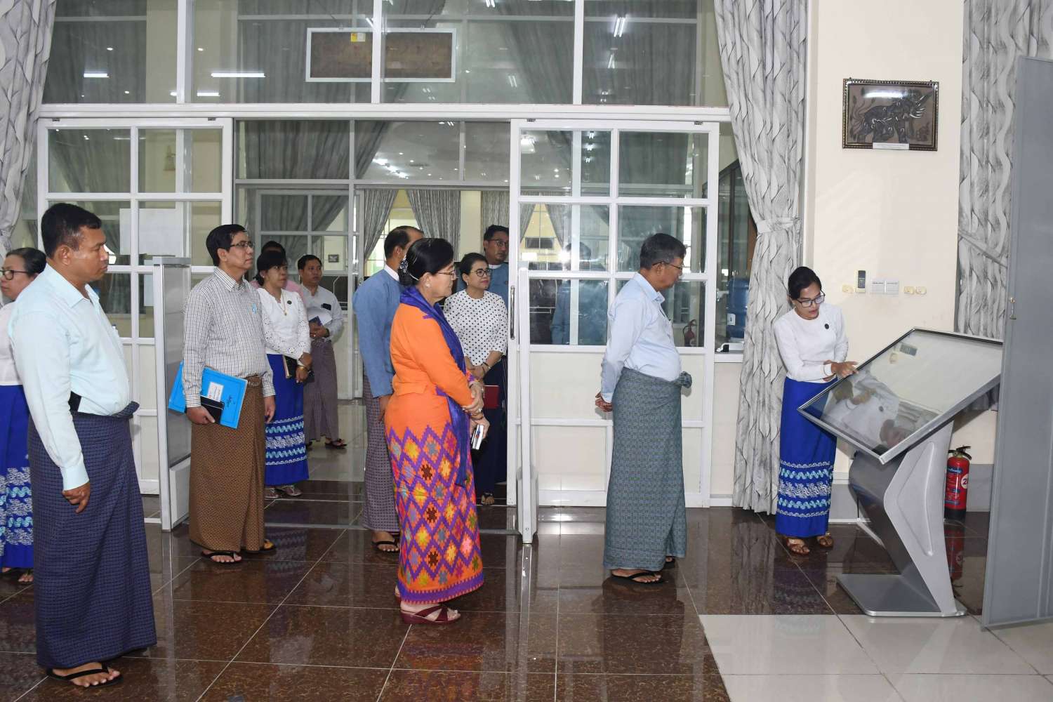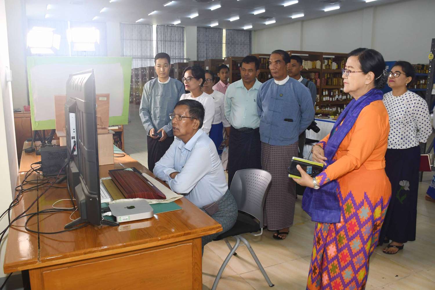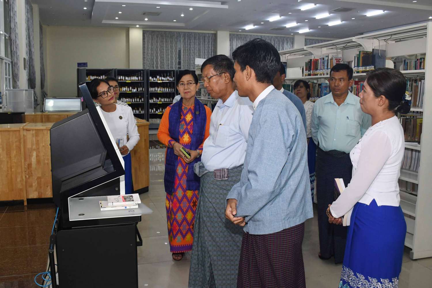 ပြည်ထောင်စုဝန်ကြီးအား အမျိုးသားစာကြည့်တိုက်(နေပြည်တော်) ရှင်းလင်းဆောင်၌ သမိုင်းသုတေသနနှင့် အမျိုးသားစာကြည့်တိုက်ဦးစီးဌာန ညွှန်ကြားရေးမှူးချုပ်က အမျိုးသားစာကြည့်တိုက်(နေပြည်တော်)၏ သမိုင်းကြောင်းနှင့် လုပ်ငန်းဆောင်ရွက်မှု အခြေအနေများကို ရှင်းလင်းတင်ပြသည်။