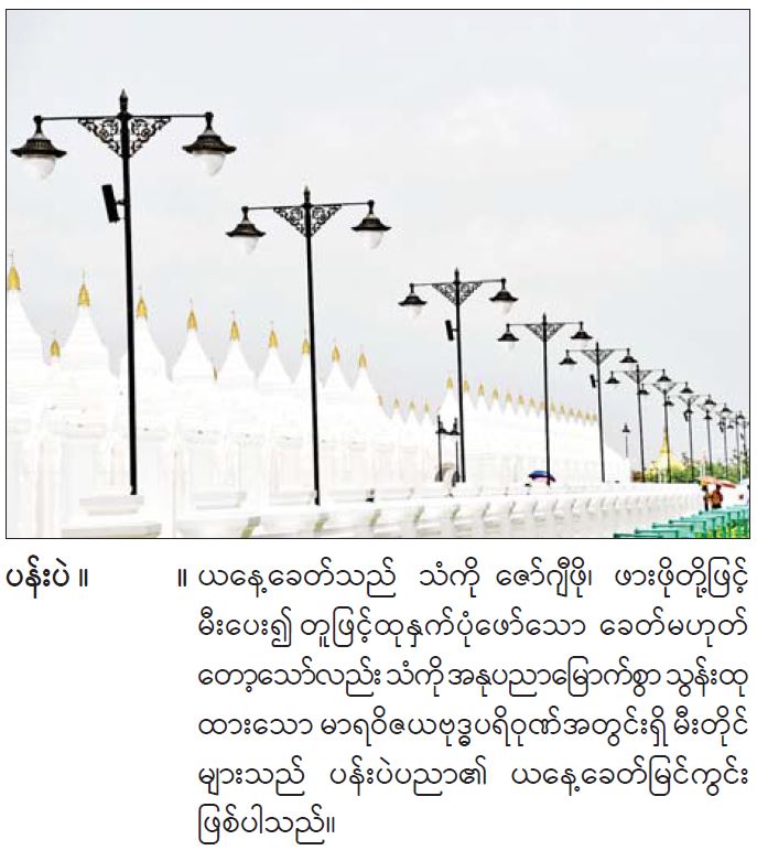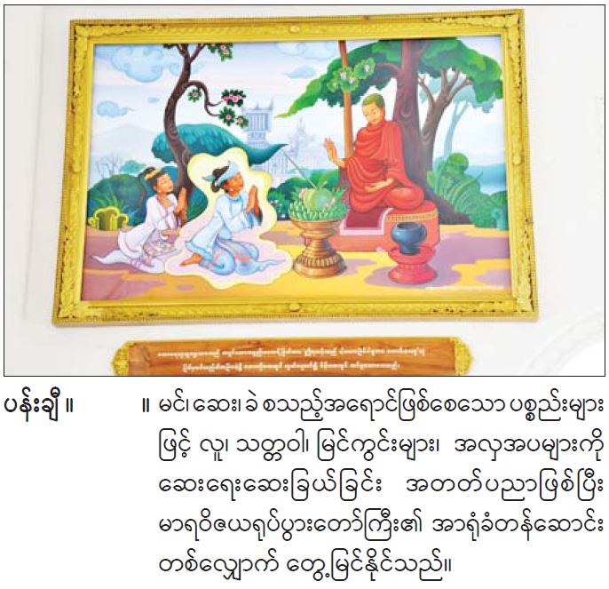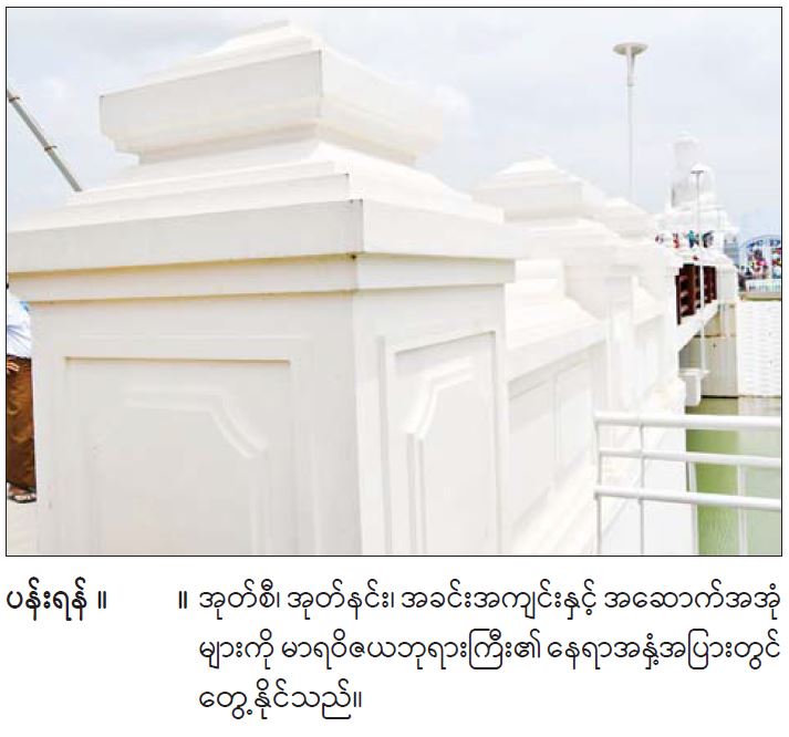 ပဲ၊ ထိမ်၊ တဉ်း၊ တော့၊ ရန်၊ ပု၊ မော့ “မှတ်လော့” ပွတ်၊ ချီ၊ ယွန်း ဟုအမည်ရ မြန်မာ့အလှအနုပညာရပ်များကို မာရဝိဇယစကျင်ဗုဒ္ဓရုပ်ပွားတော်မြတ်ကြီးရှိရာ ပရိဝုဏ်အတွင်းတွင် တစုတဝေးလေ့လာနိုင်ပါသည်။