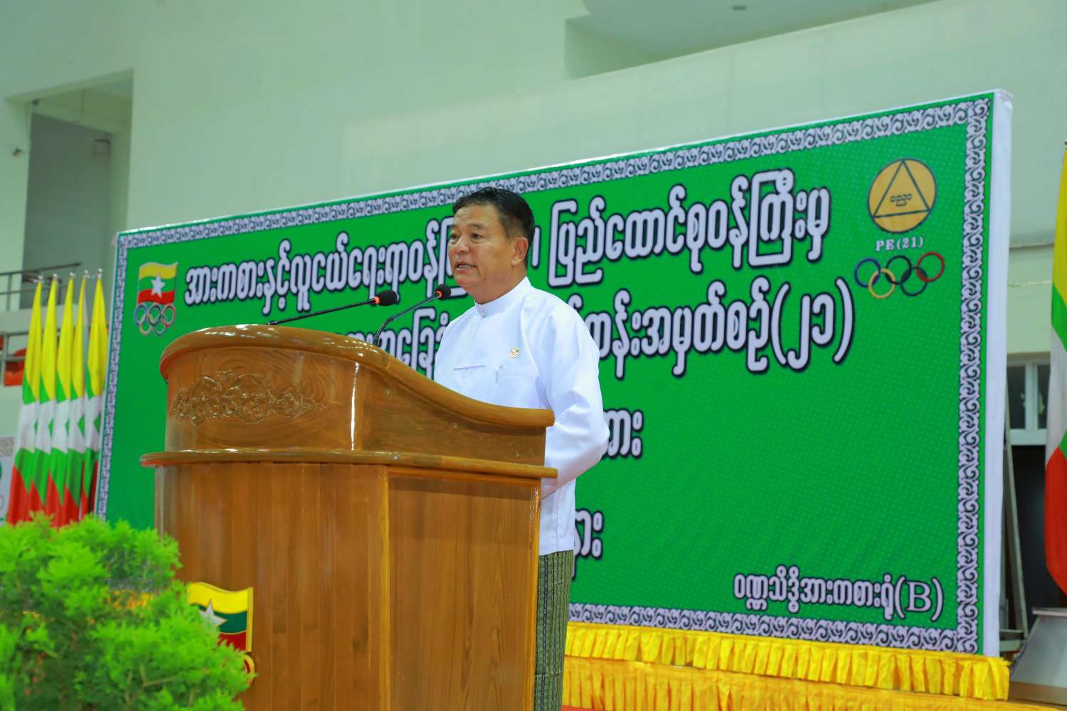 ဦးစွာ ပြည်ထောင်စုဝန်ကြီးဦးမင်းသိန်းဇံက လက်ရှိအချိန်တွင် နိုင်ငံတော်အနေဖြင့် အားကစားကဏ္ဍ ဖွံ့ဖြိုးတိုးတက်စေရေး အဘက်ဘက်မှ ပံ့ပိုးဖြည့်ဆည်းဆောင်ရွက်ပေးလျက်ရှိကြောင်း၊ ကျန်းမာကြံ့ခိုင်ပြီး စိတ်ဓာတ်ကြံ့ခိုင်မှုရှိမှသာ ပညာရေးသာမက အားကစားတွင် ထူးချွန်ထက်မြက်အောင်မြင်သူများ ဖြစ်လာနိုင်ကြောင်း၊ ယခင်က အားကစားတွင် “စည်းကမ်းသည် ပထမ၊ စံချိန်သည် ဒုတိယ” ဟူသည့်ဆောင်ပုဒ်အတိုင်း လေ့ကျင့်ဆောင်ရွက်ခဲ့ကြပြီး မိမိရောက်ရှိ တာဝန်ယူချိန်မှစ၍ ကျန်းမာရေးကောင်းမွန်မှသာ အရာအားလုံးကို ပြီးမြောက်အောင်မြင်အောင် ဆောင်ရွက်နိုင်မည်ဖြစ်သည့်အတွက် “ကျန်းမာရေးသည် ပထမ၊ စည်းကမ်းသည်ဒုတိယ၊ စံချိန်သည် တတိယ”ဟု ပြောင်းလဲပြင်ဆင်ဆောင်ရွက်ခဲ့ကြောင်း၊ သင်တန်းသား/သင်တန်းသူများ၊ ဆရာ/ဆရာမများအနေဖြင့် အားကစားကဏ္ဍဖွံ့ဖြိုးတိုးတက်စေရန် အားကစားကွင်း/အားကစားရုံများနှင့် အားကစားအထောက်အကူပြုပစ္စည်းများ အသုံးပြုရန် လိုအပ်ပါက အားကစားနှင့်ကာယပညာဦးစီးဌာန တိုင်း/ခရိုင်/မြို့နယ်များမှ အားကစားမှူးများ၊ တာဝန်ရှိသူများနှင့် ချိတ်ဆက်ပြီး ပေါင်းစပ်ညှိနှိုင်း၍ အသုံးပြုနိုင်ကြောင်း၊ လိုအပ်သည့်အားကစား အထောက်အကူပြုပစ္စည်းများကိုလည်း ဖြည့်ဆည်း ဆောင်ရွက်ပေးသွားမည်ဖြစ်ကြောင်း ပြောကြားသည်။