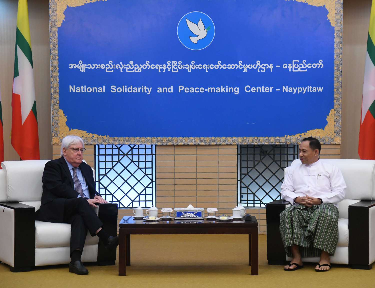 နိုင်ငံတော်စီမံအုပ်ချုပ်ရေးကောင်စီအဖွဲ့ဝင်၊ အမျိုးသားစည်းလုံးညီညွတ်ရေးနှင့် ငြိမ်းချမ်းရေးဖော်ဆောင်မှုညှိနှိုင်းရေးကော်မတီဥက္ကဋ္ဌ၊ ပြည်ထောင်စုဝန်ကြီး ဒုတိယဗိုလ်ချုပ်ကြီး ရာပြည့်သည် ကုလသမဂ္ဂအဖွဲ့အစည်း၏ တတိယအဆင့်ရှိ အဆင့်မြင့်အရာရှိကြီးနှင့် ကုလသမဂ္ဂလူသားချင်းစာနာထောက်ထားမှုဆိုင်ရာ ညှိနှိုင်းရေးရုံး (UNOCHA)၏ အကြီးအကဲဖြစ်သူ ကုလသမဂ္ဂလူသားချင်းစာနာထောက်ထားမှုဆိုင်ရာနှင့် အရေးပေါ်ကယ်ဆယ်ရေးဆိုင်ရာ ညှိနှိုင်းရေးမှူး Under- Secretary- General Mr. Martin Griffiths ဦးဆောင်သည့် ကိုယ်စားလှယ်အဖွဲ့အား ယနေ့နံနက်ပိုင်းတွင် နေပြည်တော်ရှိ အမျိုးသားစည်းလုံးညီညွတ်ရေးနှင့် ငြိမ်းချမ်းရေးဖော်ဆောင်မှုဗဟိုဌာန အစည်းအဝေးခန်းမ၌ လက်ခံတွေ့ဆုံသည်။