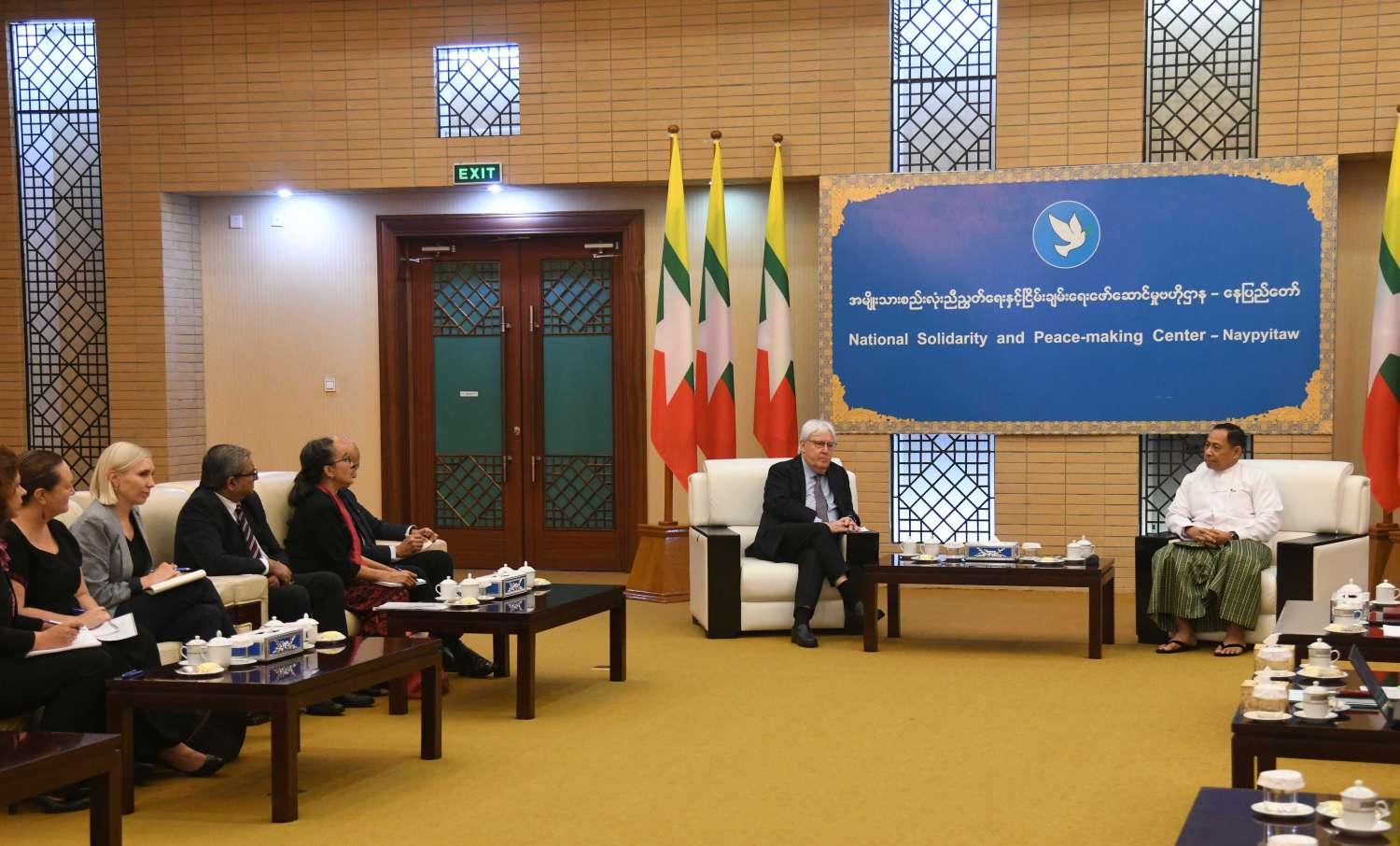 တွေ့ဆုံစဉ် လူသားချင်းစာနာထောက်ထားမှုဆိုင်ရာ အကူအညီပေးရေးကိစ္စရပ်များ၊ မြန်မာနိုင်ငံ၏ ငြိမ်းချမ်းရေးလုပ်ငန်းစဉ်ဆိုင်ရာ ကိစ္စရပ်များနှင့် အရေးပေါ်ကယ်ဆယ်ရေးဆိုင်ရာ ကိစ္စရပ်များအပေါ် အမြင်ချင်းဖလှယ်ဆွေးနွေးခဲ့ကြသည်။