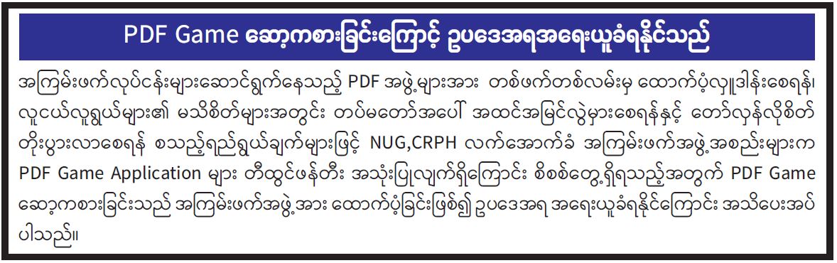 PDF Game ဆော့ကစားခြင်းကြောင့် ဥပဒေအရ အရေးယူခံရနိုင်သည်