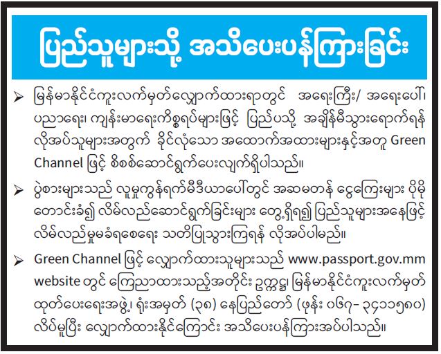 ဝန်ကြီးဌာန ကြေညာချက်များ