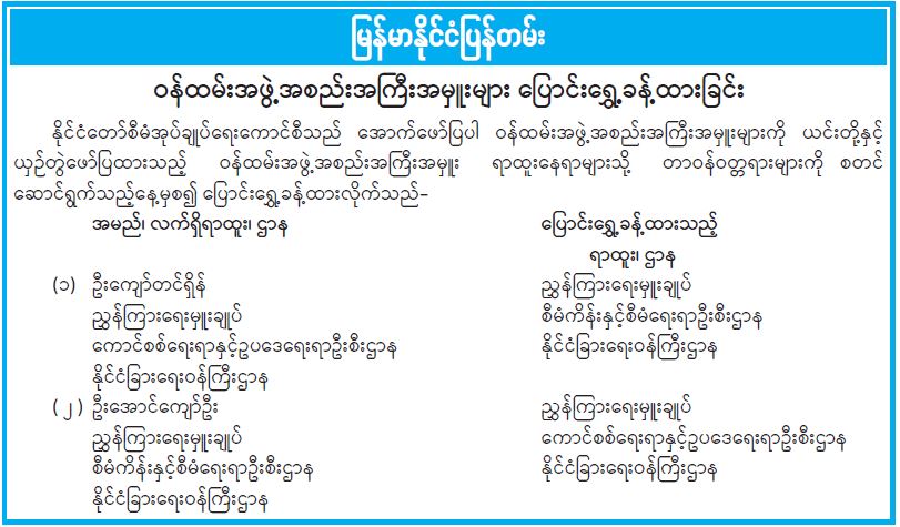 ဝန်ထမ်းအဖွဲ့အစည်းအကြီးအမှူးများ ပြောင်းရွှေ့ခန့်ထားခြင်း