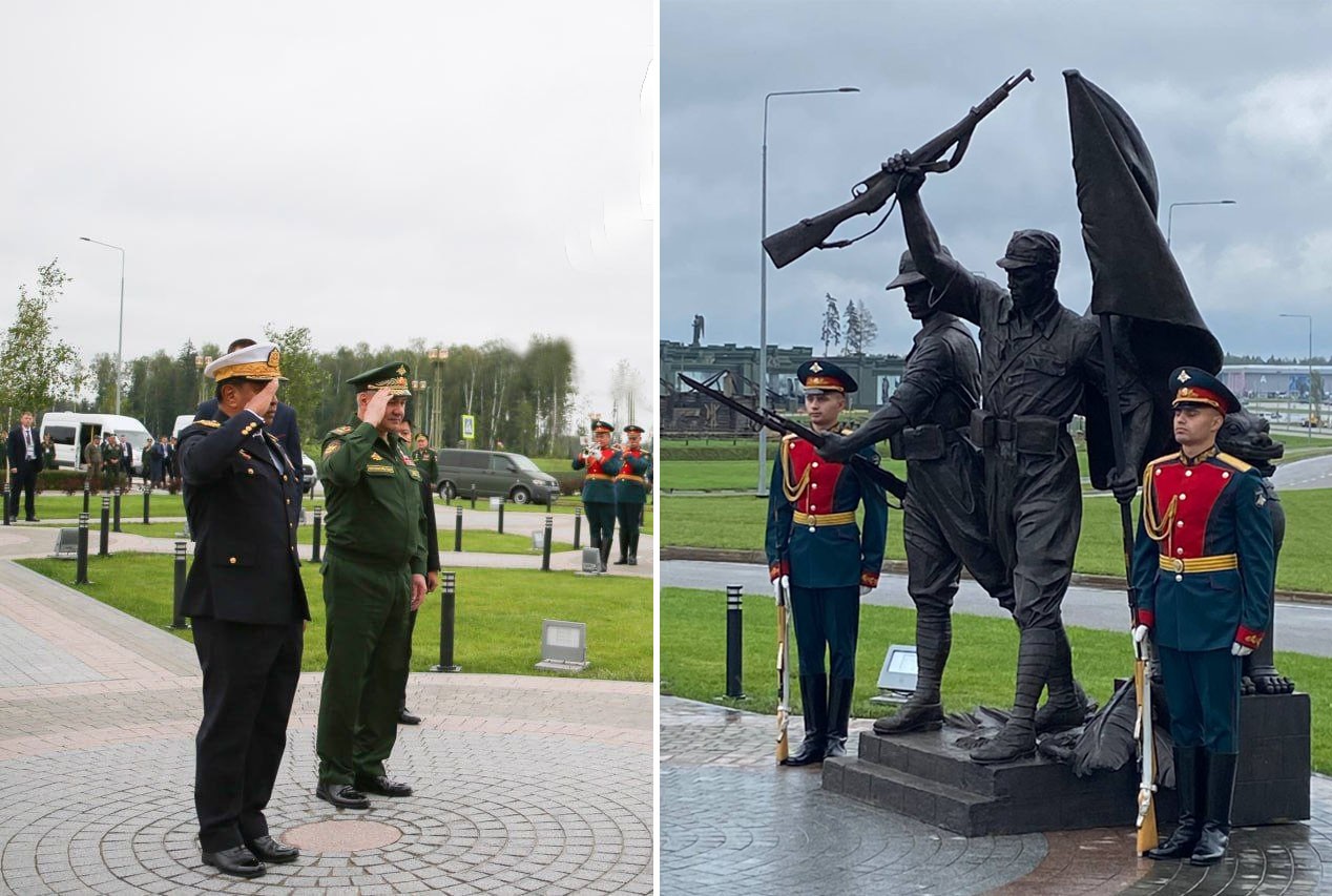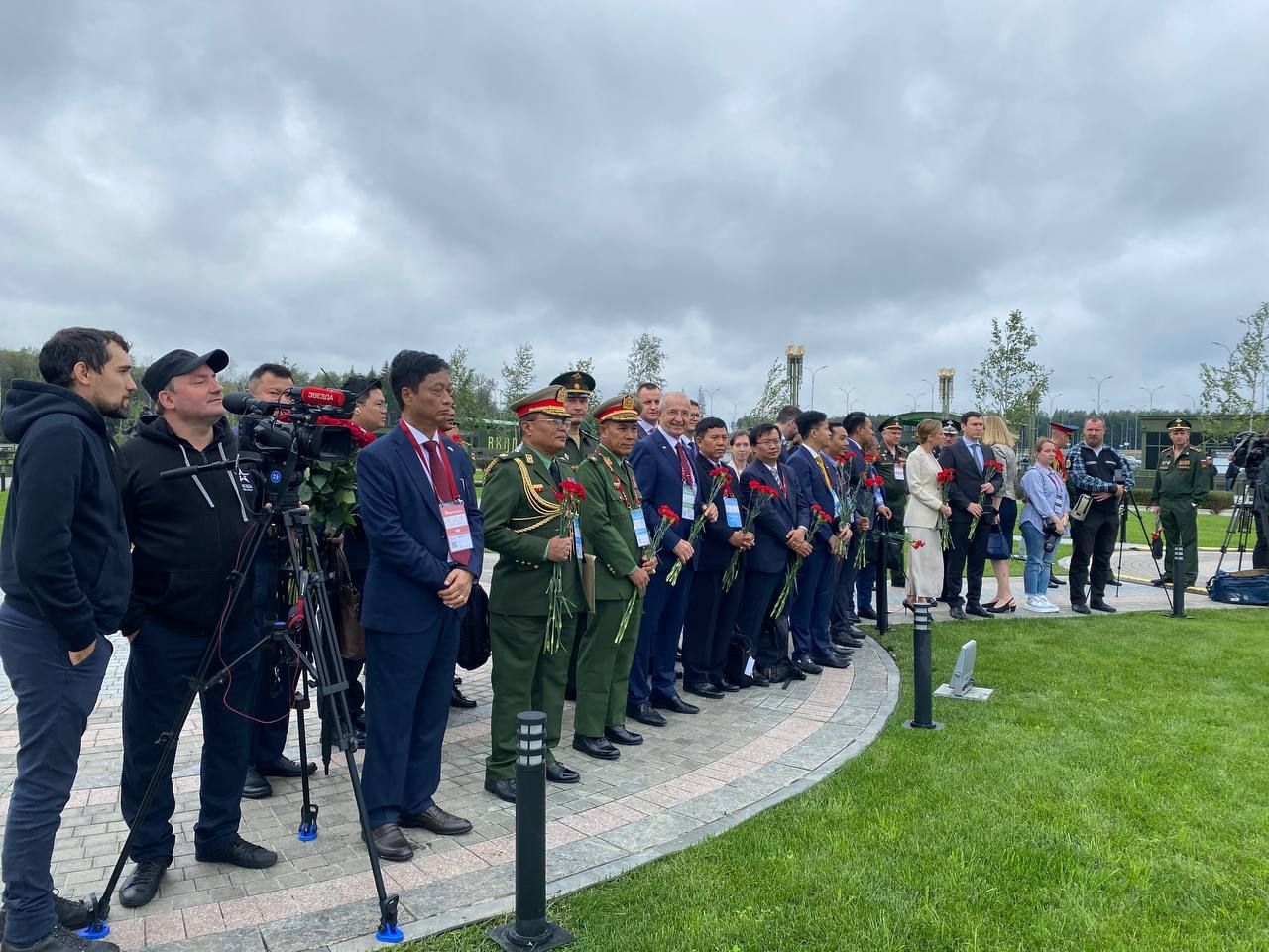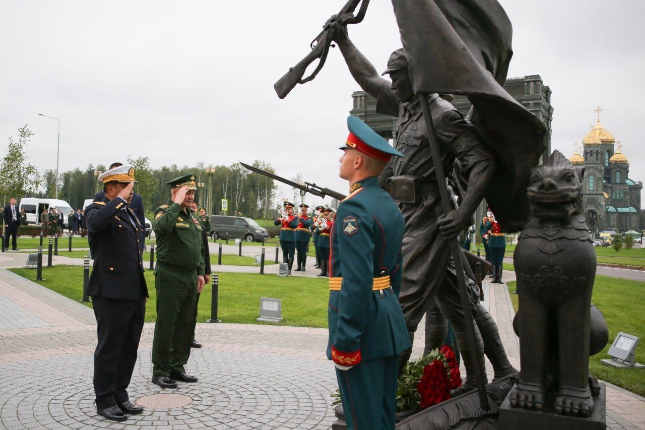 ယင်းနောက် ရုရှားဖက်ဒရေးရှင်းနိုင်ငံ၊ ကာကွယ်ရေးဝန်ကြီး၊ ပြည်ထောင်စုသမ္မတမြန်မာနိုင်ငံတော်၊ နိုင်ငံတော်စီမံအုပ်ချုပ်ရေးကောင်စီအဖွဲ့ဝင်၊ ကာကွယ်ရေးဝန်ကြီး ပြည်ထောင်စုဝန်ကြီးနှင့် အဖွဲ့ဝင်များ၊ အခမ်းအနားတက်ရောက်လာကြသူများသည် ဒုတိယကမ္ဘာစစ်ကာလအတွင်း တိုက်ပွဲဝင်ခဲ့ကြသည့် “မြန်မာ့စစ်သည်တော်မဟာမိတ်များ”အမည်ရှိ အထိမ်းအမှတ်ရုပ်တုရှေ့၌ ဂုဏ်ပြုပန်းစည်းများချ၍ အလေးပြုကြပြီး အခမ်းအနားကို အောင်မြင်စွာရုပ်သိမ်းခဲ့သည်။