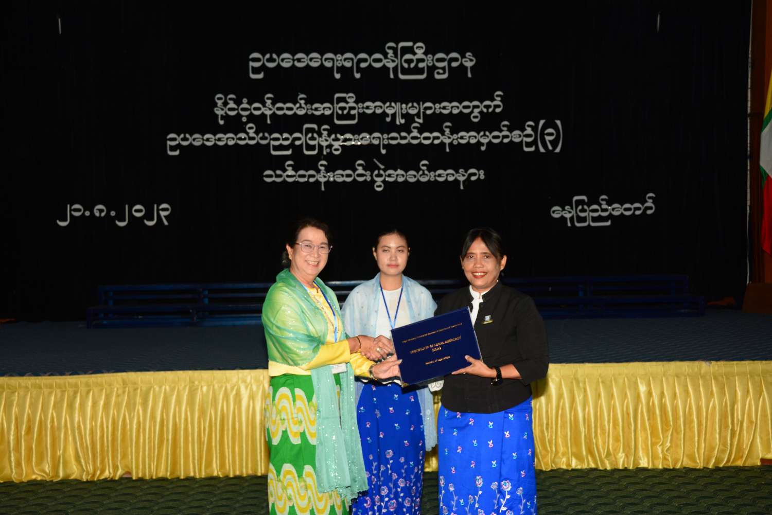 နိုင်ငံ့ဝန်ထမ်းအကြီးအမှူးများအတွက် ဥပဒေအသိပညာပြန့်ပွားရေးသင်တန်းအမှတ်စဉ်(၃) သင်တန်းဆင်းပွဲအခမ်းအနားကို ယနေ့နံနက်ပိုင်းတွင် ဥပဒေရေးရာဝန်ကြီးဌာန မြေညီထပ်အစည်းအဝေးခမ်းမ၌ ကျင်းပသည်။