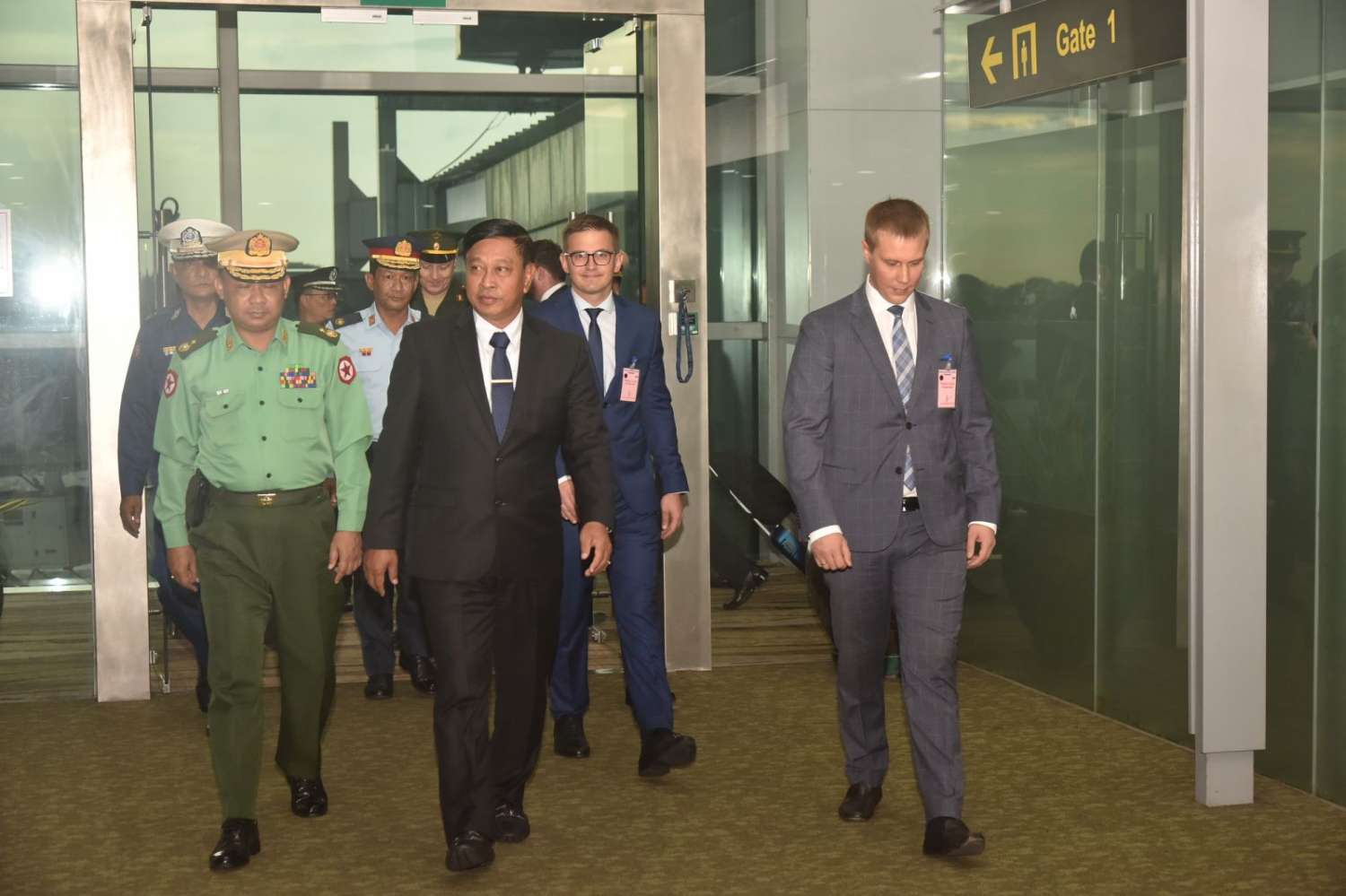 နိုင်ငံတော်စီမံအုပ်ချုပ်ရေးကောင်စီဝင်၊ ဒုတိယဝန်ကြီးချုပ်နှင့် ကာကွယ်ရေးဝန်ကြီးဌာန၊ ပြည်ထောင်စုဝန်ကြီး ဗိုလ်ချုပ်ကြီးတင်အောင်စန်းဦးဆောင်သည့် ကိုယ်စားလှယ်အဖွဲ့သည် ရုရှားနိုင်ငံ၊ မော်စကိုဒေသတွင် ကျင်းပပြုလုပ်ခဲ့သည့် နိုင်ငံတကာစစ်ဘက်နည်းပညာဖိုရမ် (ARMY-2023)နှင့် (၁၁)ကြိမ်မြောက် နိုင်ငံတကာ လုံခြုံရေးဆိုင်ရာညီလာခံ (XI Moscow Conference on International Security) သို့ တက်ရောက်ခဲ့ပြီး ၂၀၂၃ ခုနှစ်၊ ဩဂုတ်လ ၂၁ ရက် ညနေပိုင်းတွင် ရန်ကုန်အပြည်ပြည်ဆိုင်ရာလေဆိပ်သို့ ပြန်လည်ရောက်ရှိခဲ့ရာ ရန်ကုန်တိုင်းစစ်ဌာနချုပ် တိုင်းမှူးဗိုလ်ချုပ်ဇော်ဟိန်း၊ တပ်မတော်အရာရှိကြီးများ၊ မြန်မာနိုင်ငံဆိုင်ရာ ရုရှားဖက်ဒရေးရှင်းနိုင်ငံ သံရုံးမှ Counsellor ဖြစ်သူ Mr. Pavel KLABUKOV ၊ စစ်သံမှူး Mr. Sergey KURCHENKO နှင့် တာဝန်ရှိသူများမှ ကြိုဆိုခဲ့ကြပါသည်။