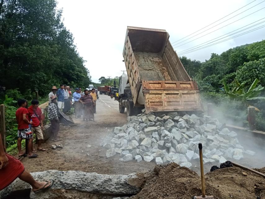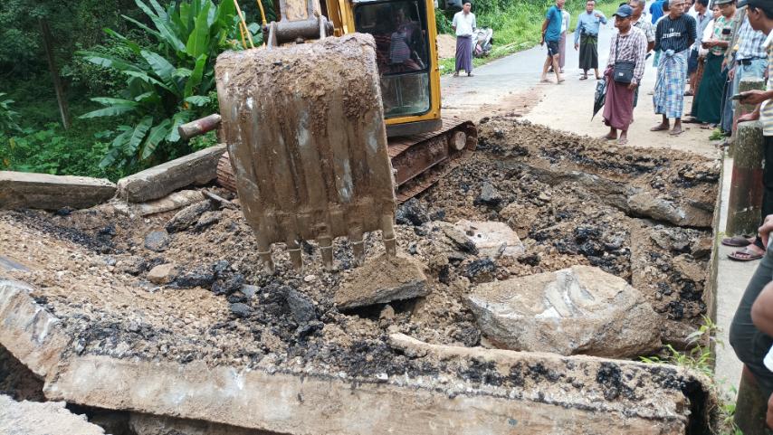 အဆိုပါ လမ်းပိုင်းသည်ဩဂုတ် (၂၁) ရက် ညနေ ၆ နာရီခန့်က မိုးသည်းထန်စွာရွာသွန်းပြီး ရေတိုက်စားမှုကြောင့် သံကူကွန်ကရစ်တံတား အရှည် (၁၅) ပေ၊ အကျယ် (၁၈) ပေလမ်းအပိုင်းပြိုကျမှုဖြစ်ပွားခဲ့ပြီး လမ်းများပိတ်ဆို့ခြင်း၊ လမ်းပြတ်သွားခြင်းများဖြစ်ပေါ်ခဲ့ရာ မော်တော်ယာဉ်ကြီး/ ယာဉ်ငယ်များလမ်းပိတ်ဆို့ကာ ဖြတ်သန်းသွားလာမရခဲ့သော်လည်း ယခု ဩဂုတ် (၂၂) ရက်၊ နေလယ် (၁၁) နာရီခွဲအချိန်က ယဉ်ကြီး/ယဉ်ငယ်များ ပြန်လည်ဖြတ်သန်းသွားလာ၍ရရှိခဲ့ကြောင်း သိရသည်။