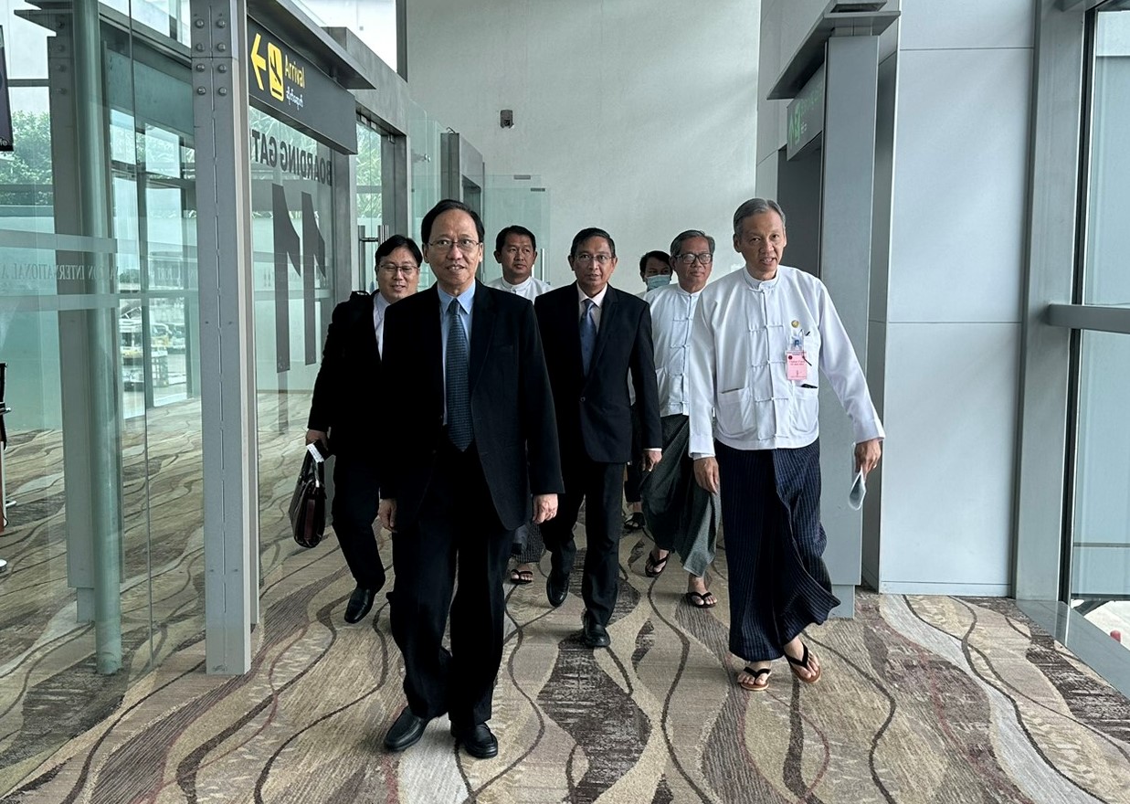 ပြည်ထောင်စုဝန်ကြီး ဦးဆောင်သော ကိုယ်စားလှယ်အဖွဲ့ကို ကျန်းမာရေးဝန်ကြီးဌာနမှ တာဝန်ရှိသူများက ရန်ကုန်အပြည်ပြည်ဆိုင်ရာလေဆိပ်၌ ပို့ဆောင်နှုတ်ဆက်ကြသည်။
